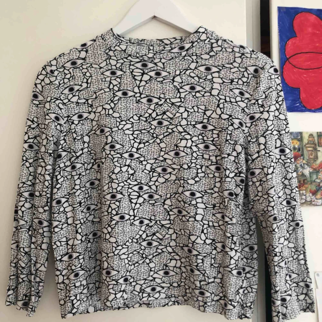 Superfin och mjuk tröja med ögon på! Den har en halvpolo och något kortare ärmar än vanligt.