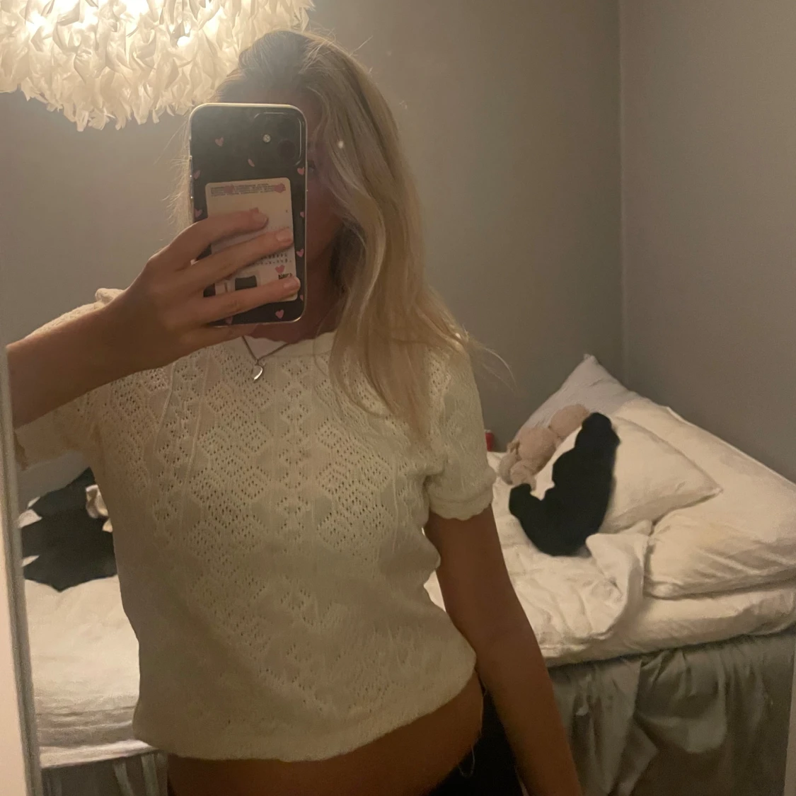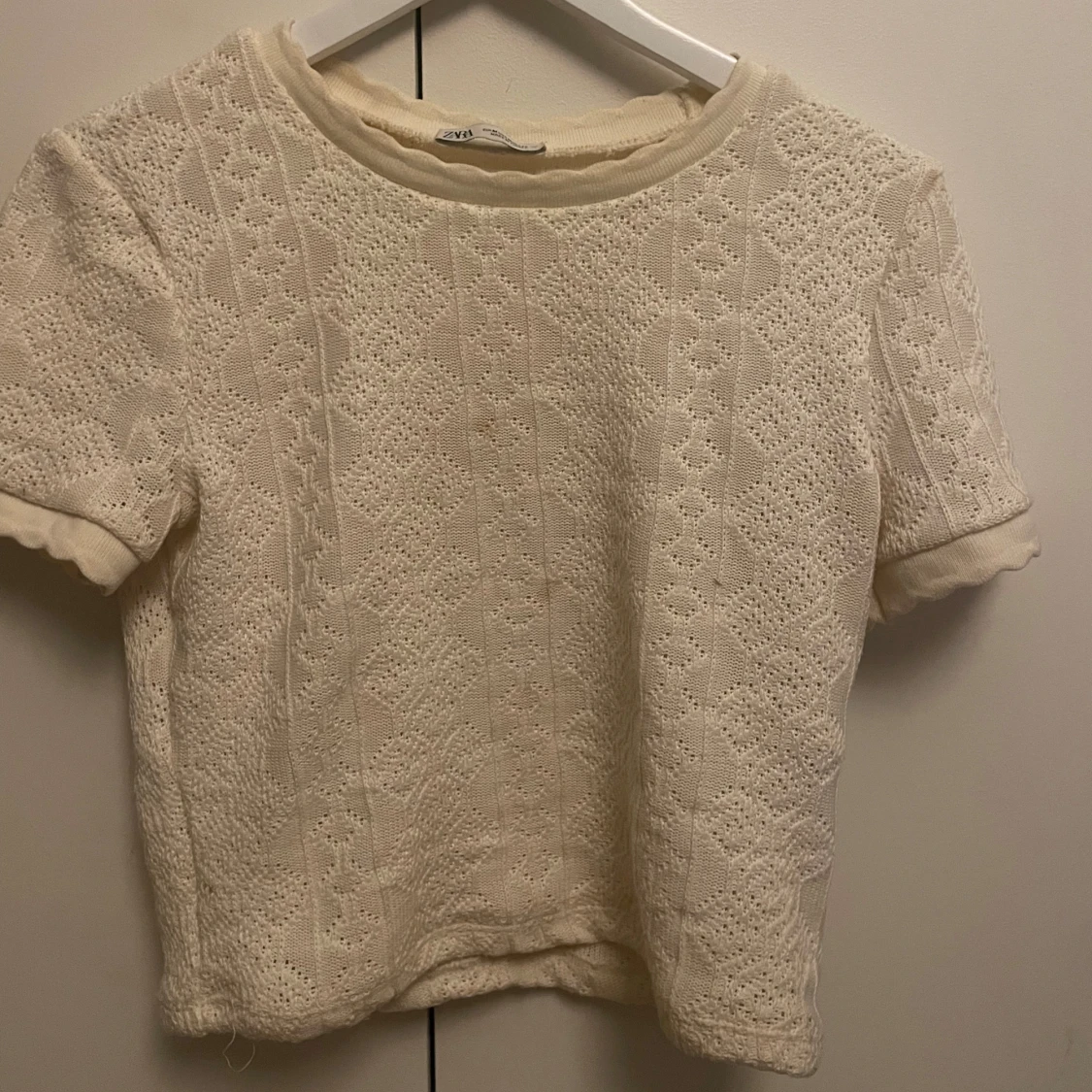 Säljer en söt vit stickad topp med mönster från Zara!