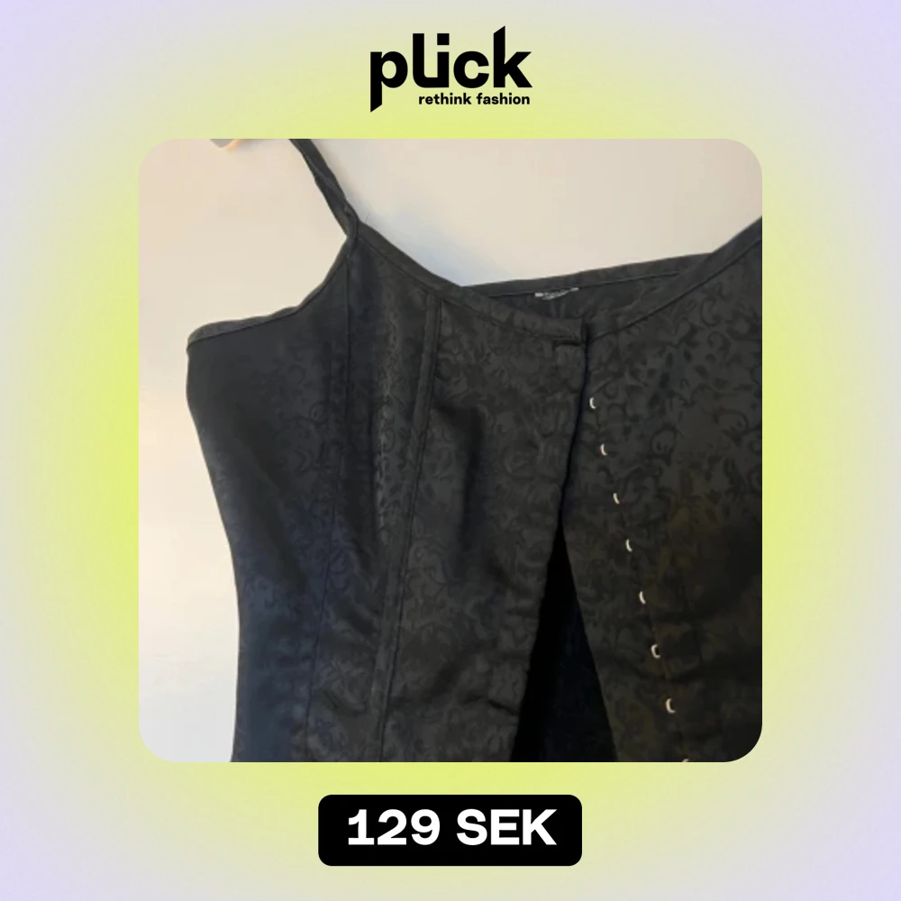 Super snygg svart mönstrad korsett topp, okänt märke. I bra skick.