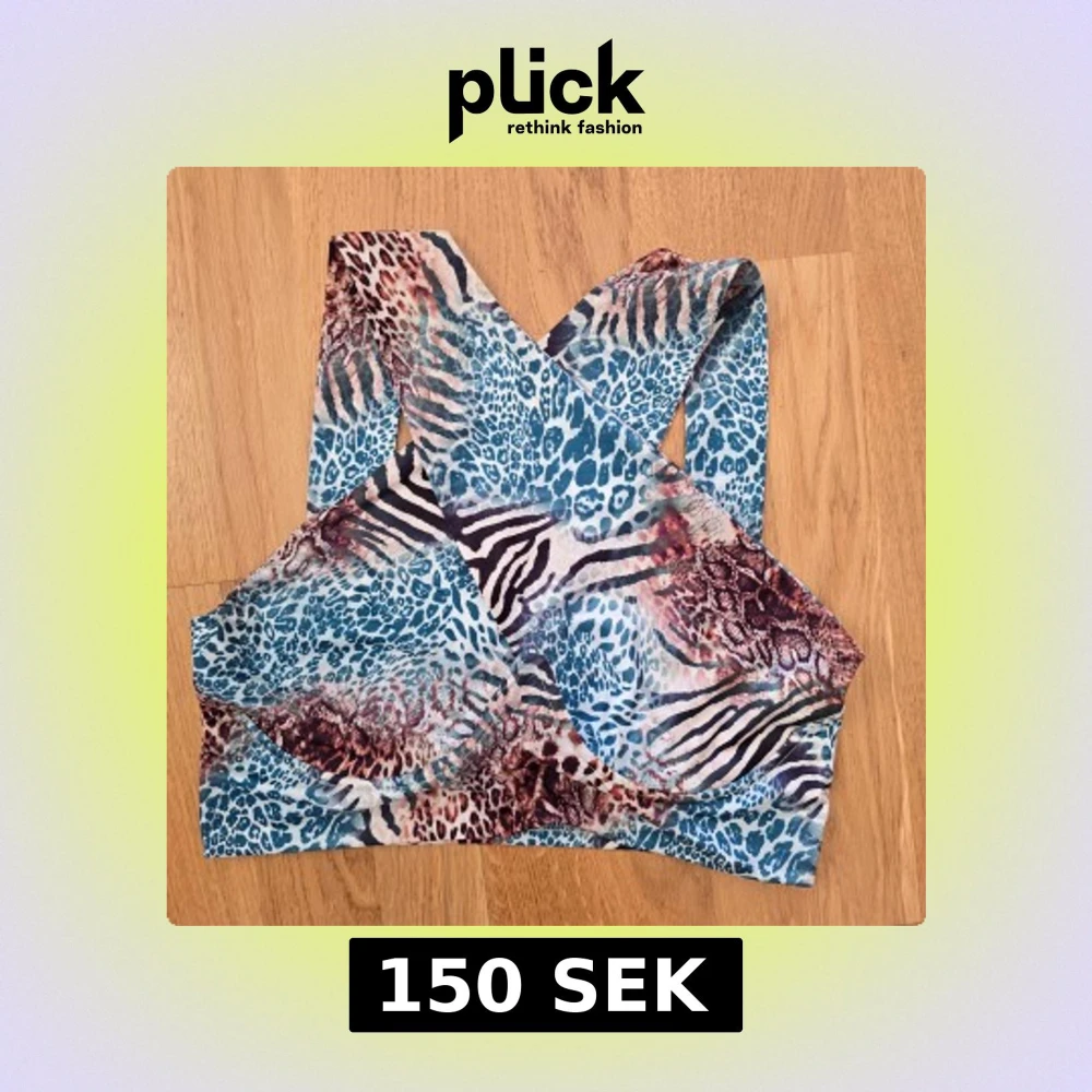 Snygg korsettopp med djurmönster i blått, brunt och svart. Toppen har en unik design med ett korsat band över bröstet och en liten öppning framtill. Perfekt för en trendig look.