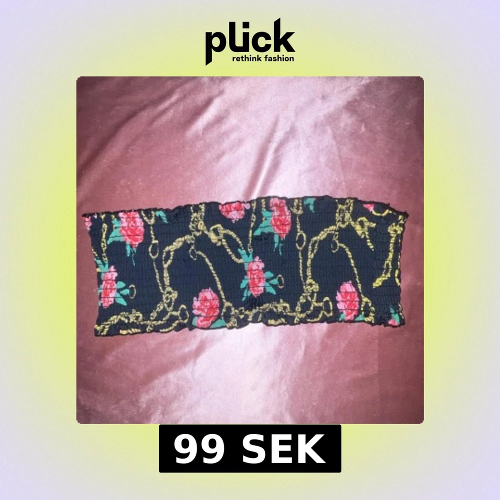 Säljer en snygg tubtopp från Gina Tricot med svart botten, röda rosor och gula kedjemönster. Toppen är elastisk och smockad, perfekt för sommaren. Materialet är en blandning av polyamid och elastan.