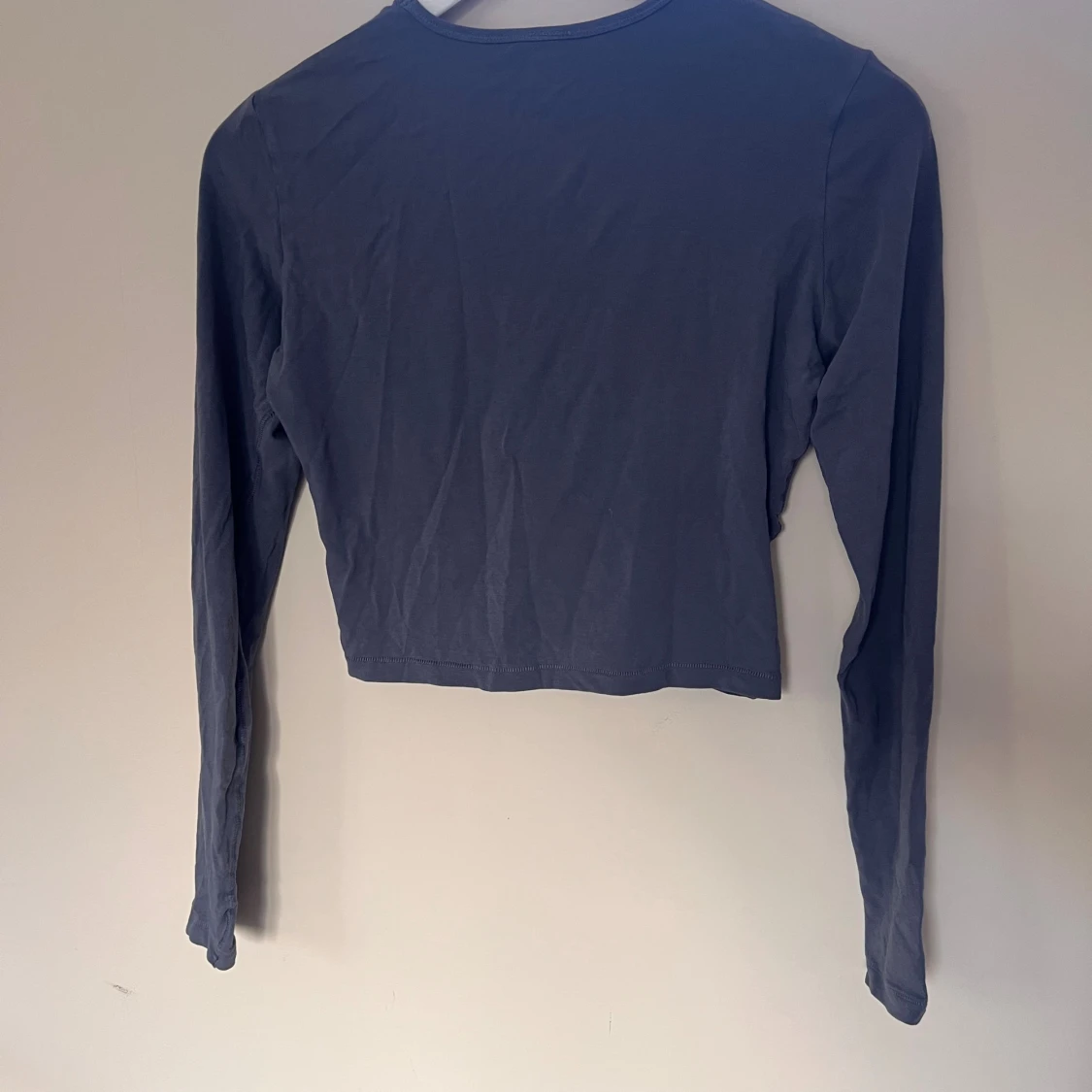Säljer en stilren mörkblå croppad topp från Skims med lång ärm och rund hals. Toppen är tillverkad i mjuk bomull med lite stretch för skön passform. Perfekt att matcha med jeans eller kjol för en chill look.