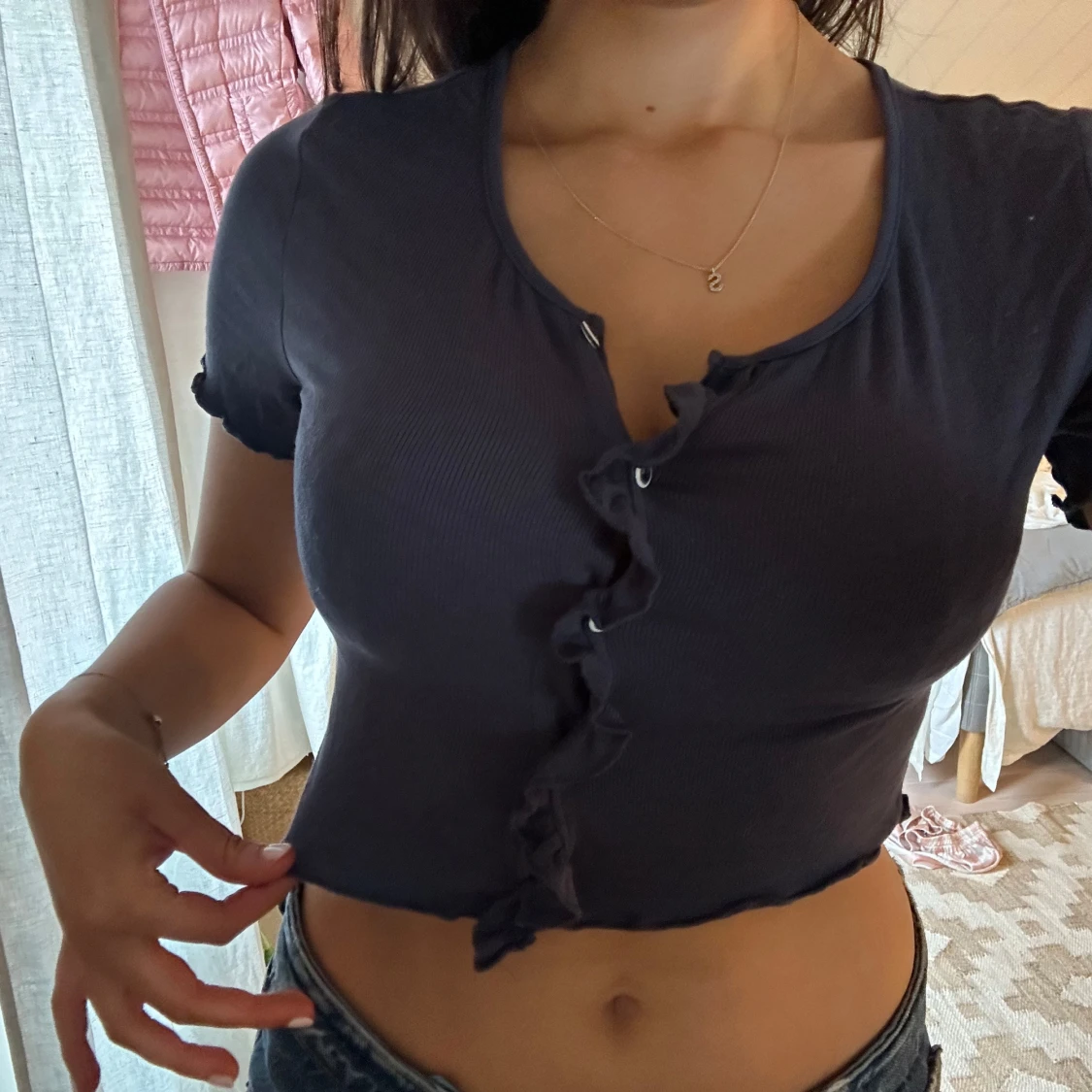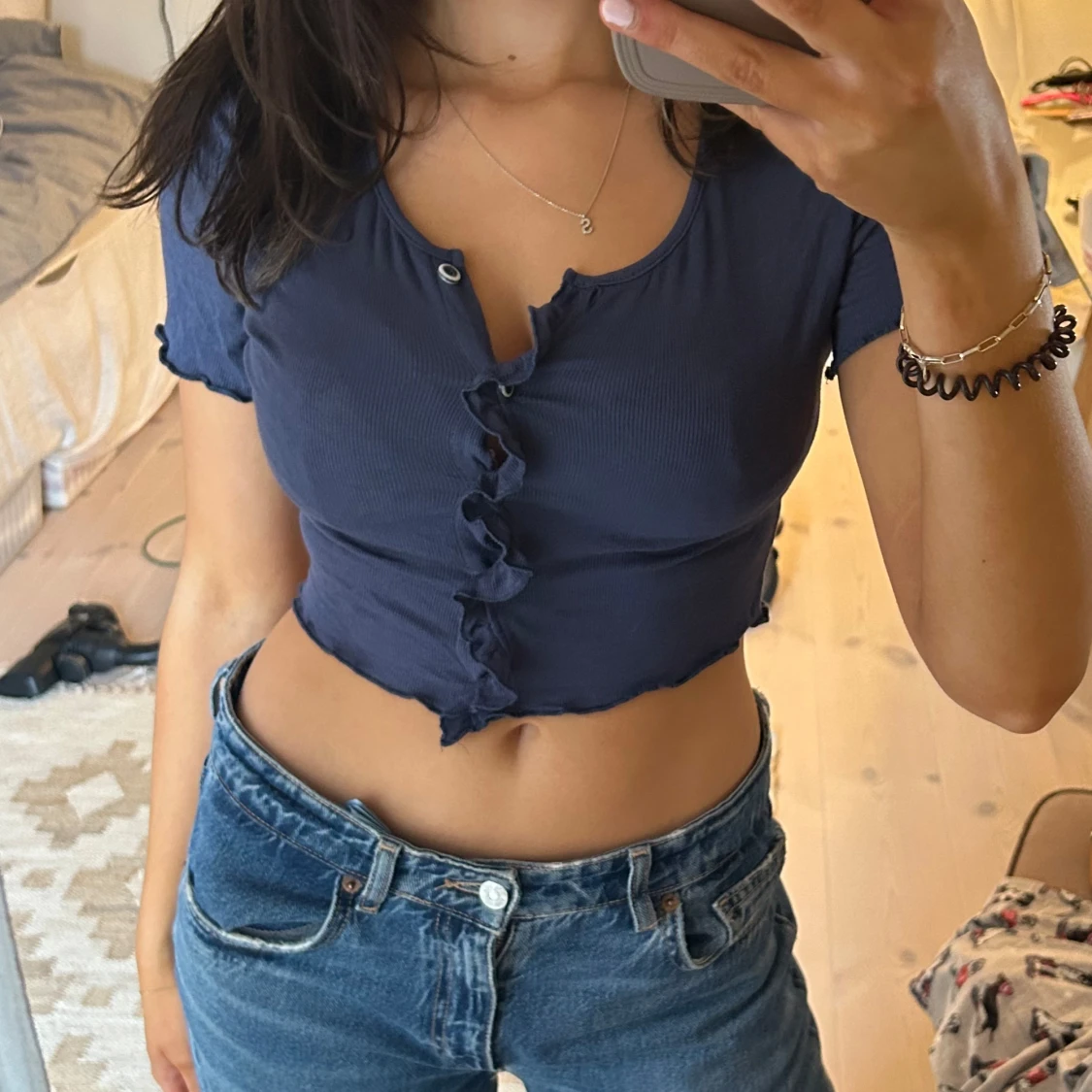 Säljer denna croppade volang topp från Shein. Aldrig använd. Storlek S. Blå. Köparen står för frakt. Kvar så länge det ej står såld 💙🦋🧵