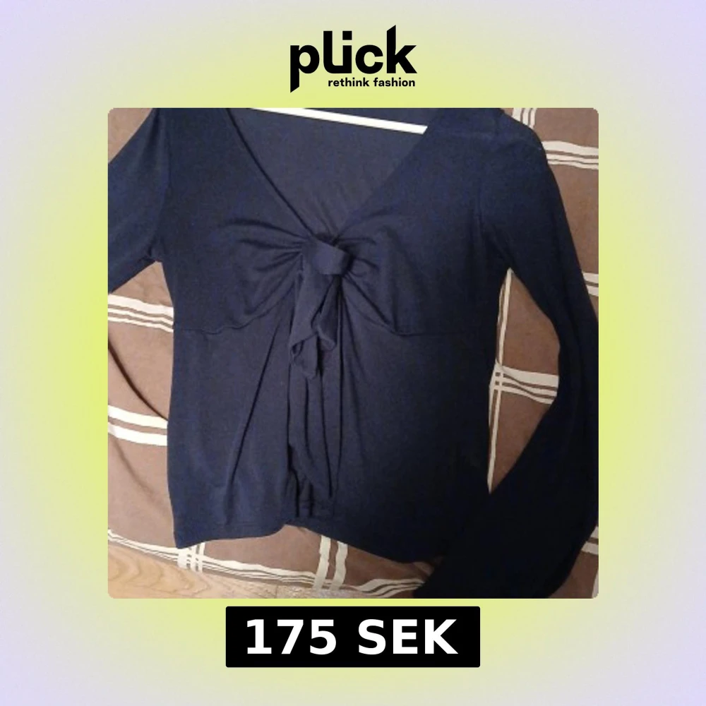 Supersnygg mörkblå långärmad topp från Gina Tricot med v-ringning och stor knytrosett framtill. Toppens material är mjukt och stretchigt, perfekt för att skapa en trendig look. Passformen är normal och toppen har en stilren, enkel design som lyfts av knytet.