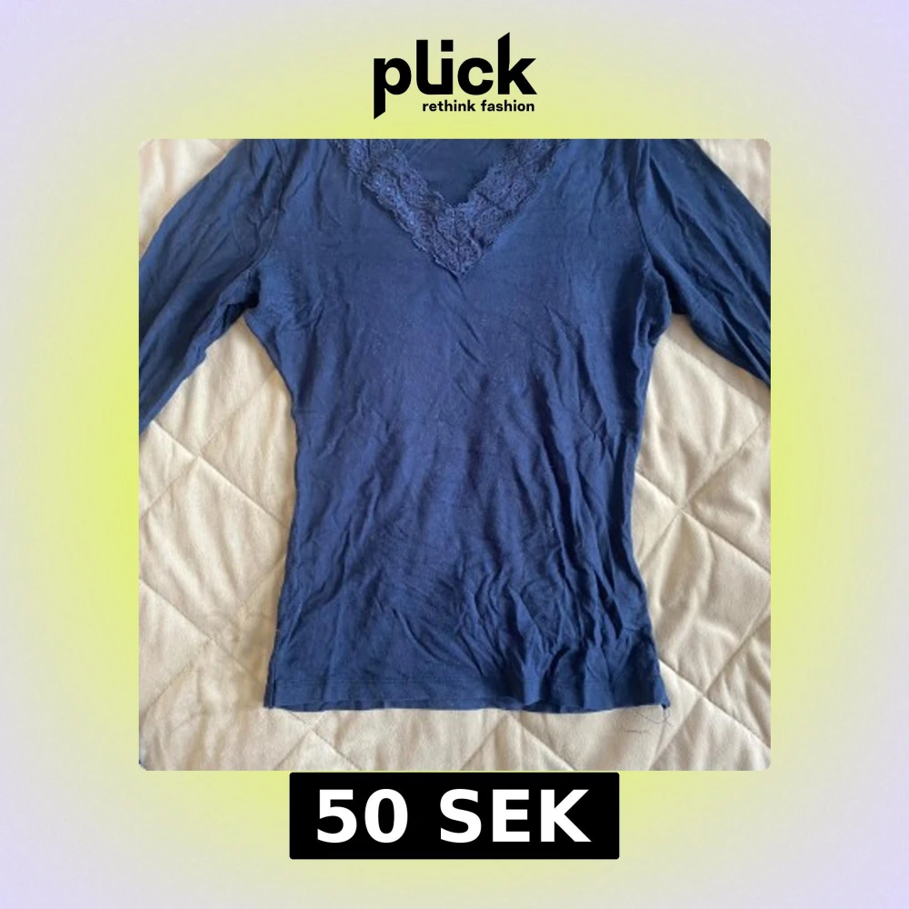 Mörkblå långärmad topp från Gina Tricot med v-ringning och spetsdetalj vid halsen. Tunn och mjuk i bomullsmix, perfekt för lager-på-lager. Snygg passform som sitter nära kroppen och funkar till många olika stilar.