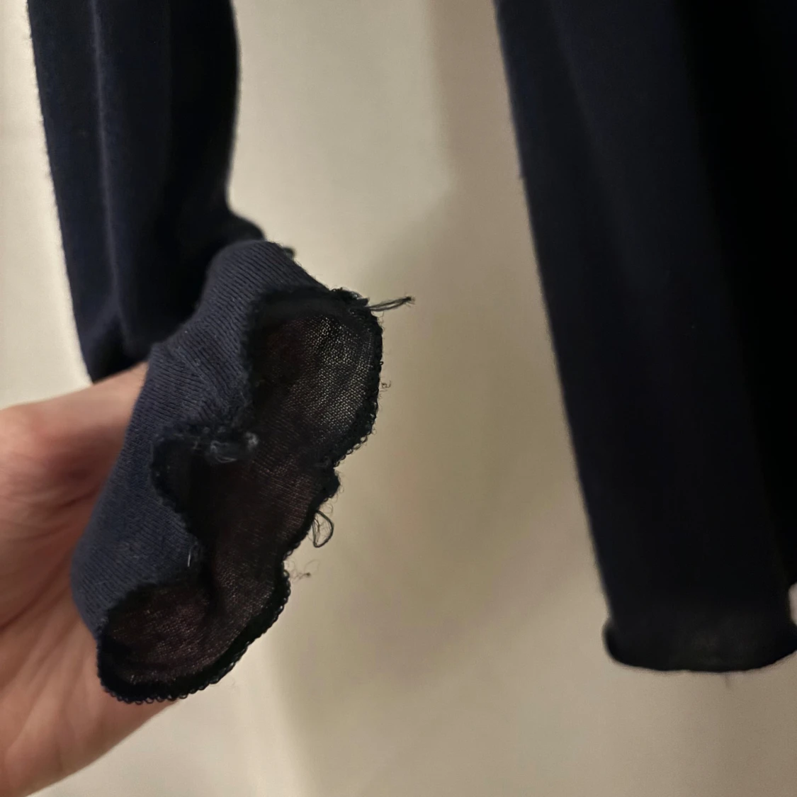 Säljer en mörkblå långärmad tröja från Intimissimi i ultralätt kashmirblandning. Toppen har tecken på användning men är så så fin och kan absolut användas ett bra tag till. Tröjan har en tråd på armen 💕därav priset