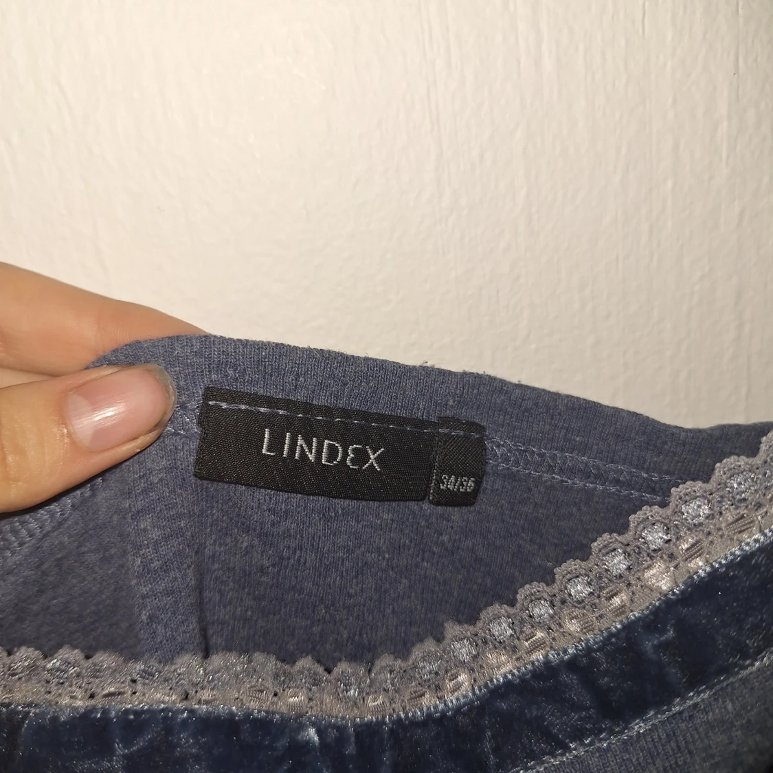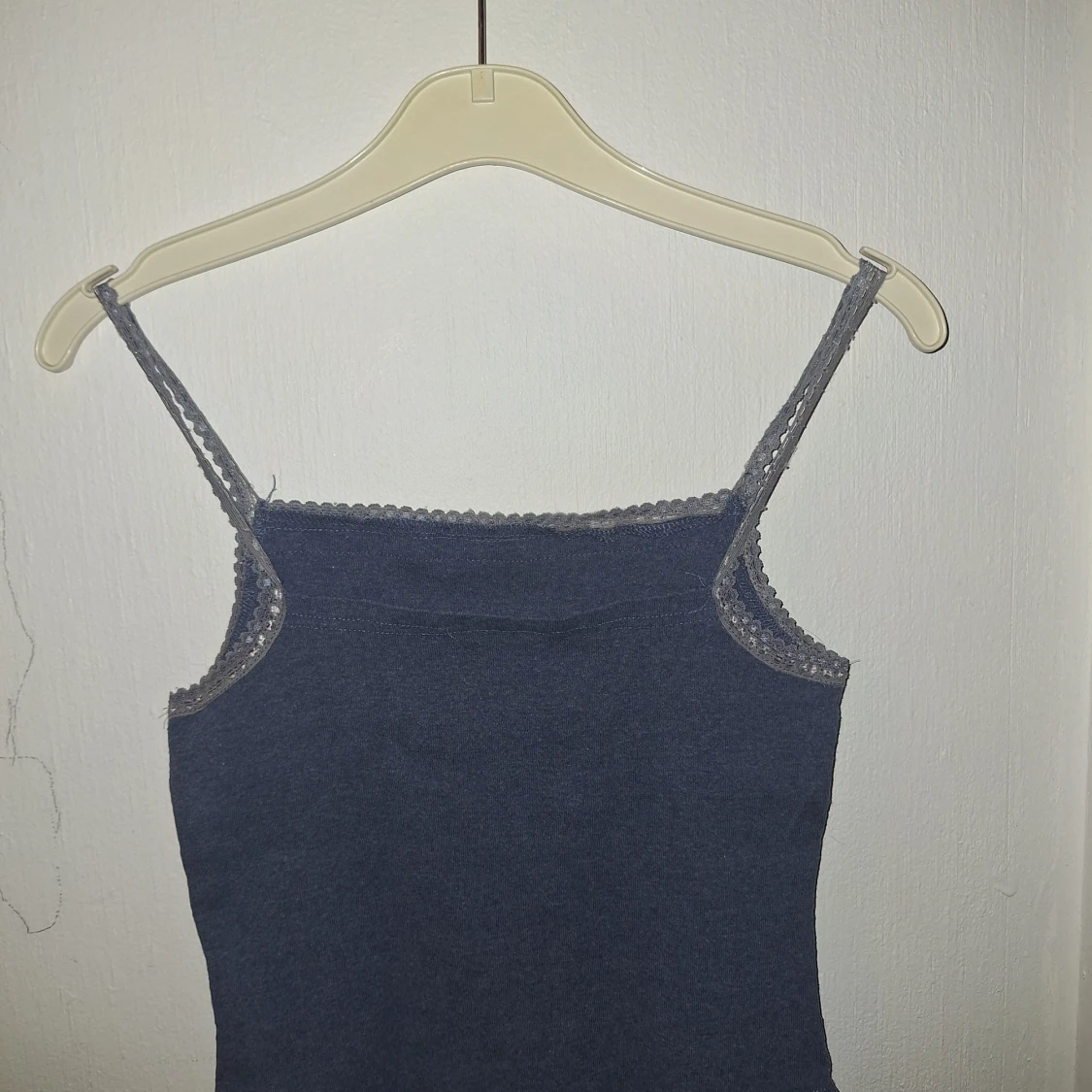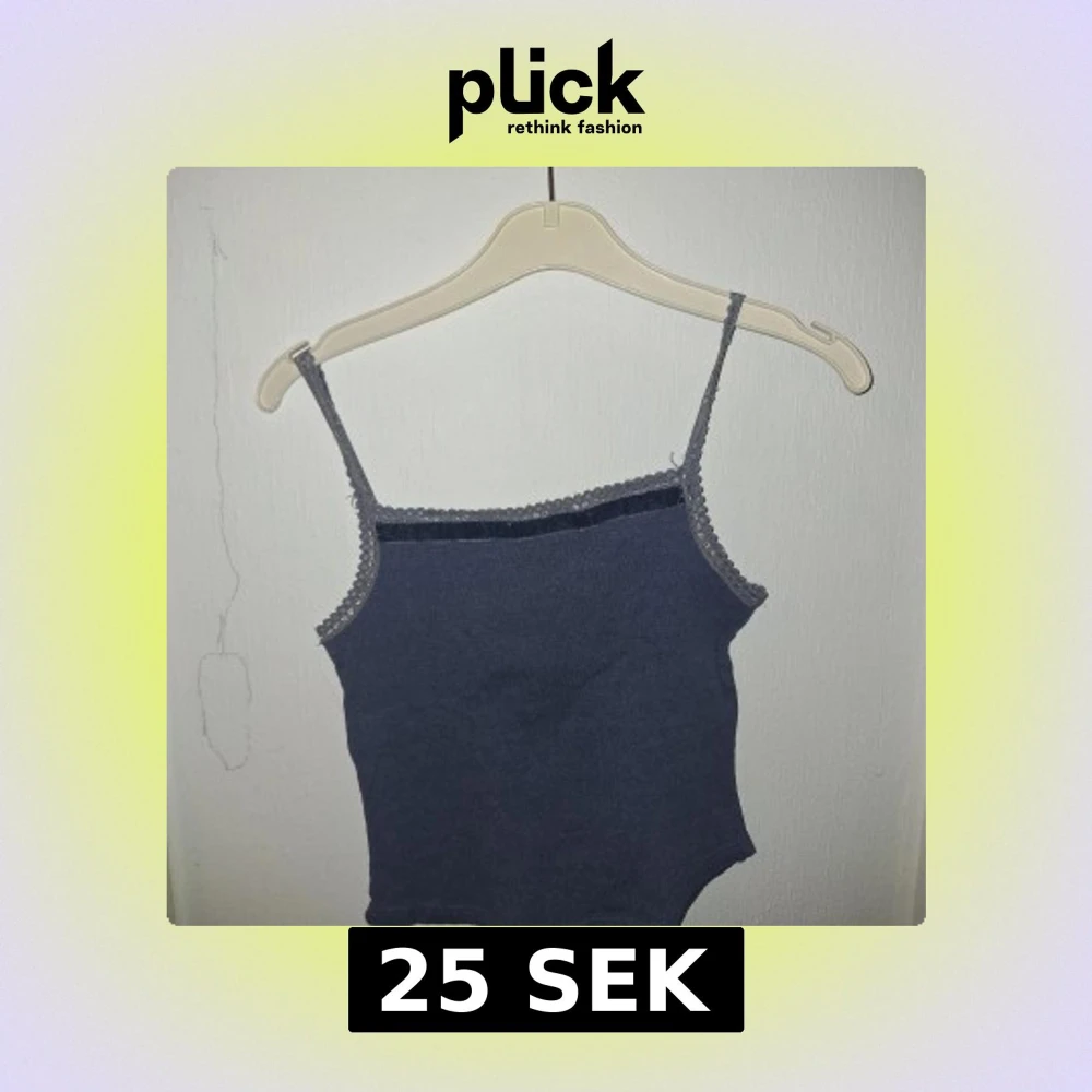 Säljer en mörkblå linnetopp från Lindex med tunna axelband och spetsdetaljer längs kanterna. Toppen är figurnära och har en enkel, stilren design som passar perfekt till sommaren. Materialet är mjukt och bekvämt.