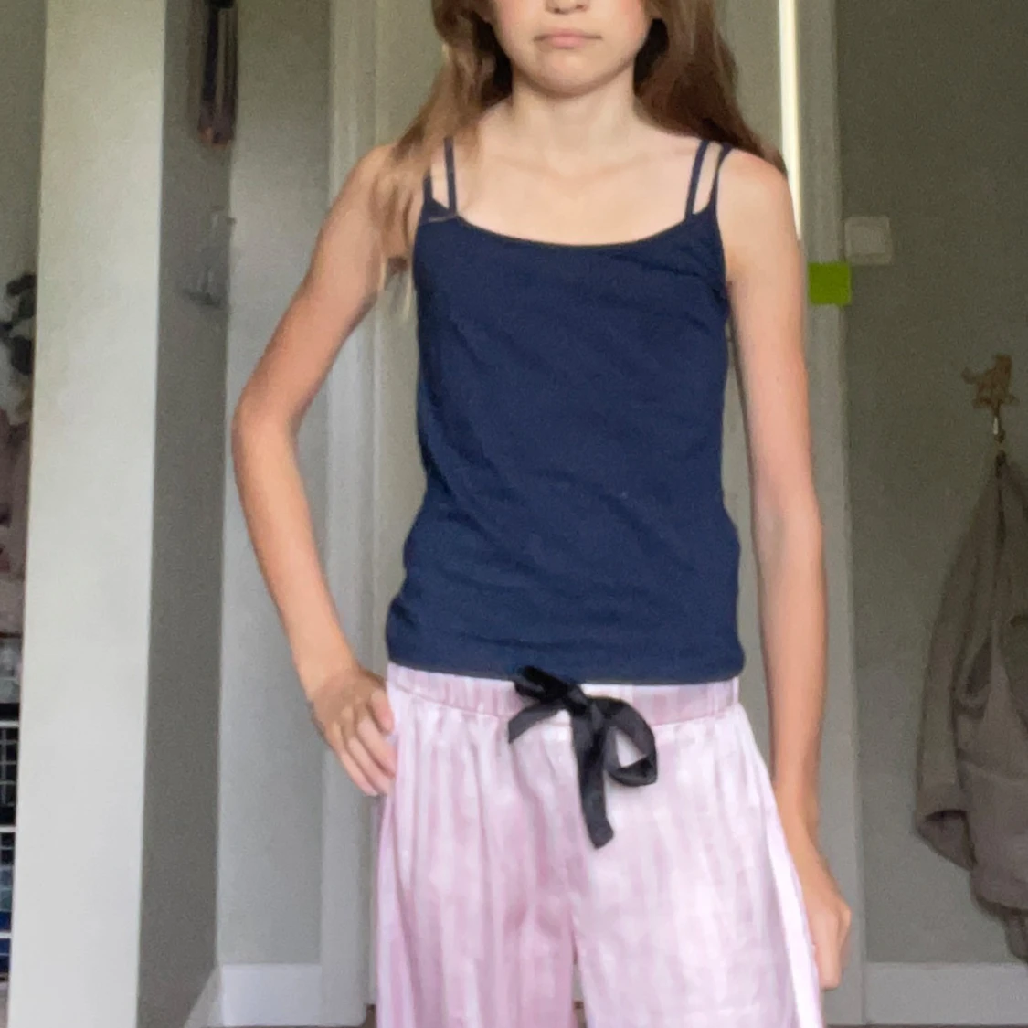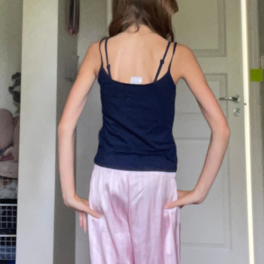 Enkel och stilren mörkblå linnetopp från Gina Tricot med smala axelband. Toppen är figurnära och passar perfekt till sommaren. Mjuk och skön bomullskänsla, lätt att matcha med både jeans och kjol.