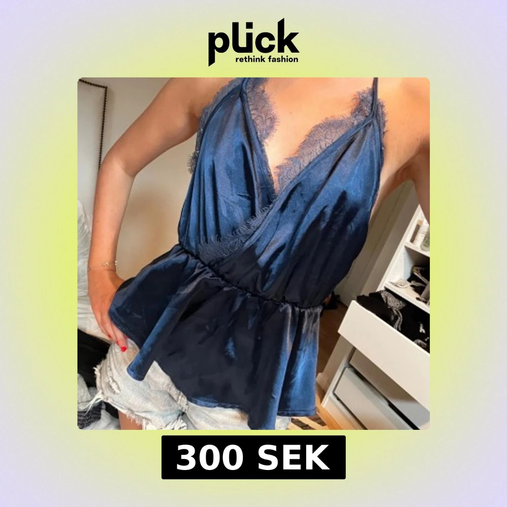 Supersnygg mörkblå linne-topp i satinliknande material som är köpt i Frankrike 💓