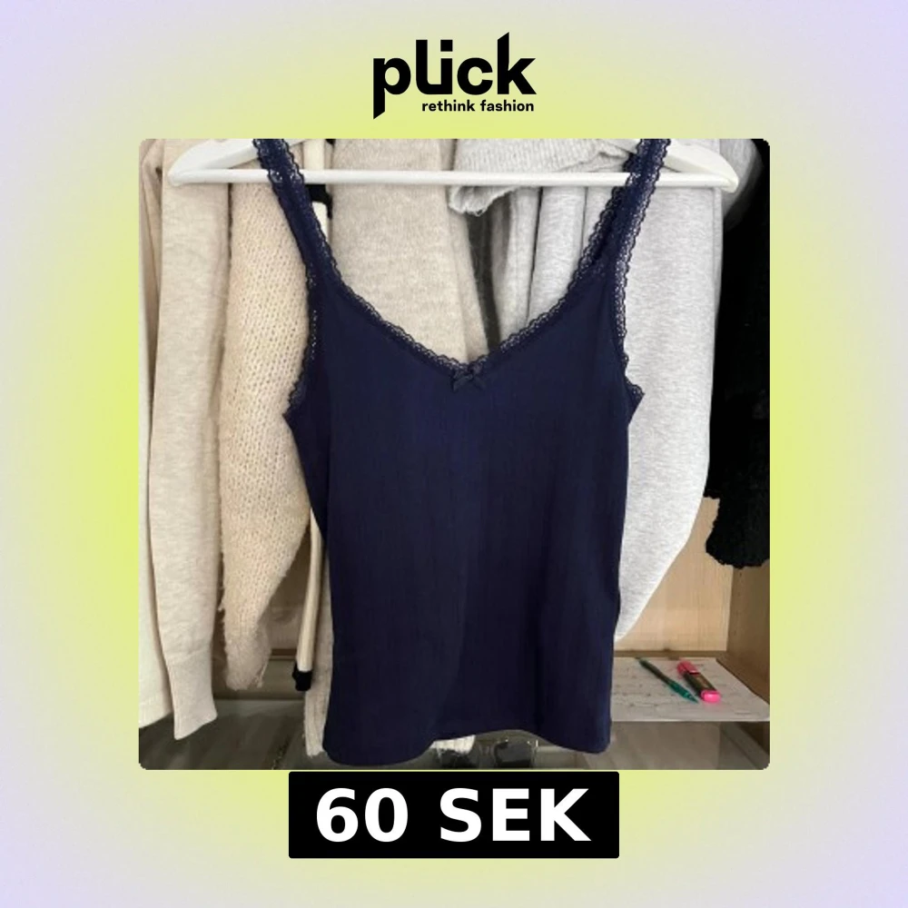 Mörkblå ribbad linnetopp med spets