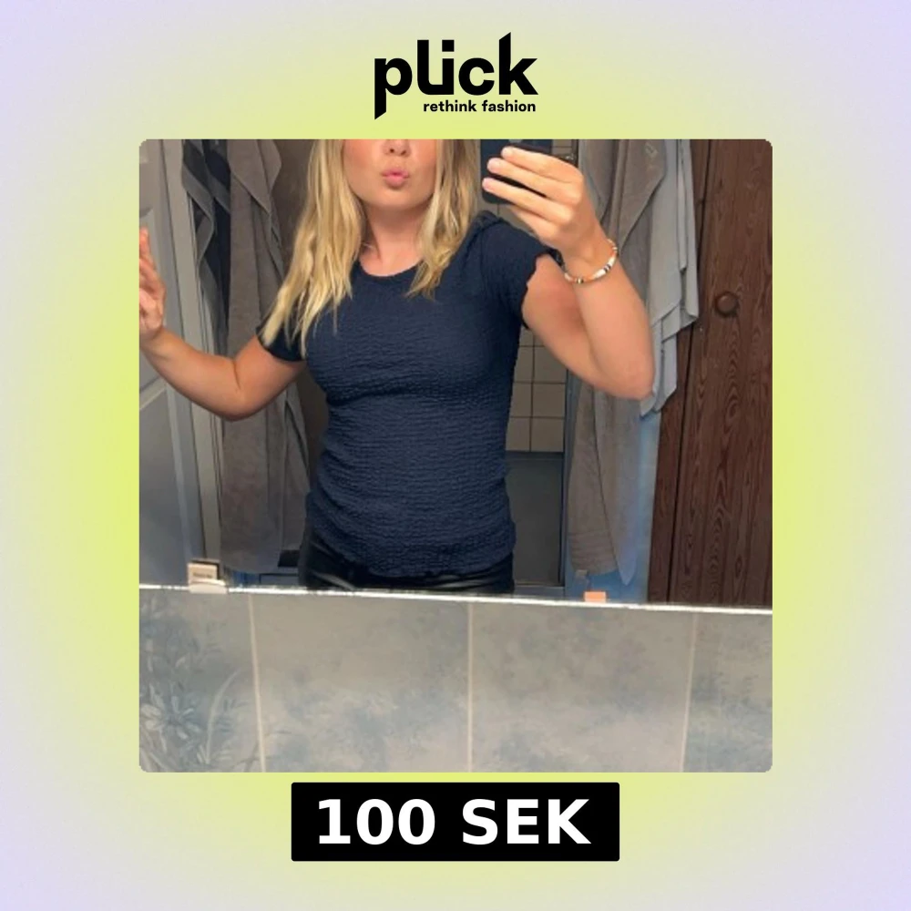 Säljer en mörkblå ribbad topp med korta ärmar. Storlek Xs och passar till typ allt! Skriv om du undrar något mer💕