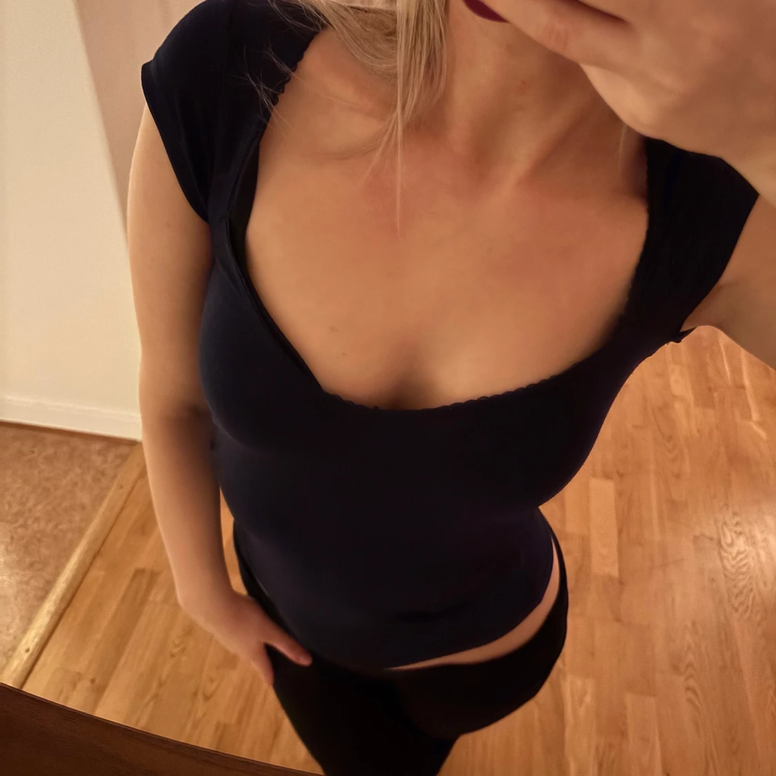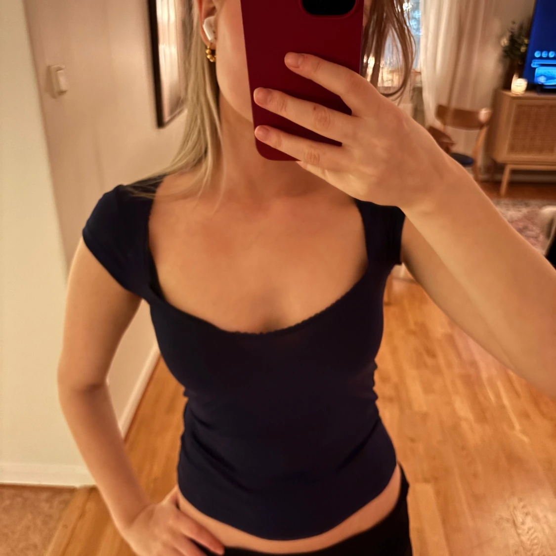 Snygg mörkblå topp med tight passform och korta ärmar. Perfekt för en stilren look. Från Nelly, slutsåld på hemsidan.