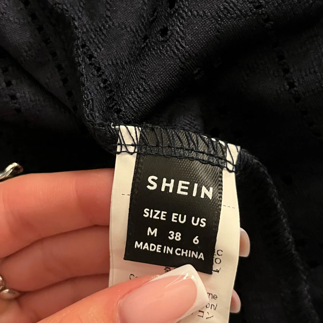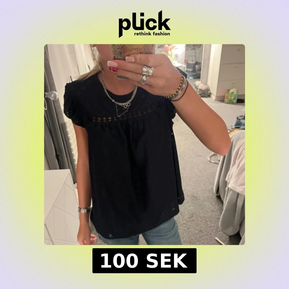 Svart blus från Shein i storlek M med broderade hål och volangärmar. Toppen har en luftig passform och fina detaljer upptill med små hål och lätt rynkning. Perfekt till jeans eller kjol för en chill och snygg look.