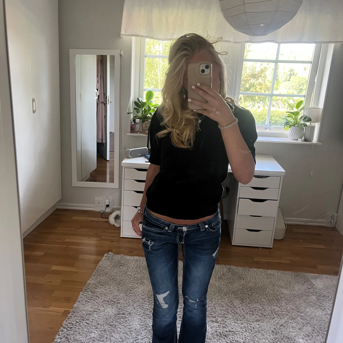 Säljer en mörkblå topp med puffiga ärmar som är väldigt fin. Passar till allt och är perfekt på hösten och våren! 💞