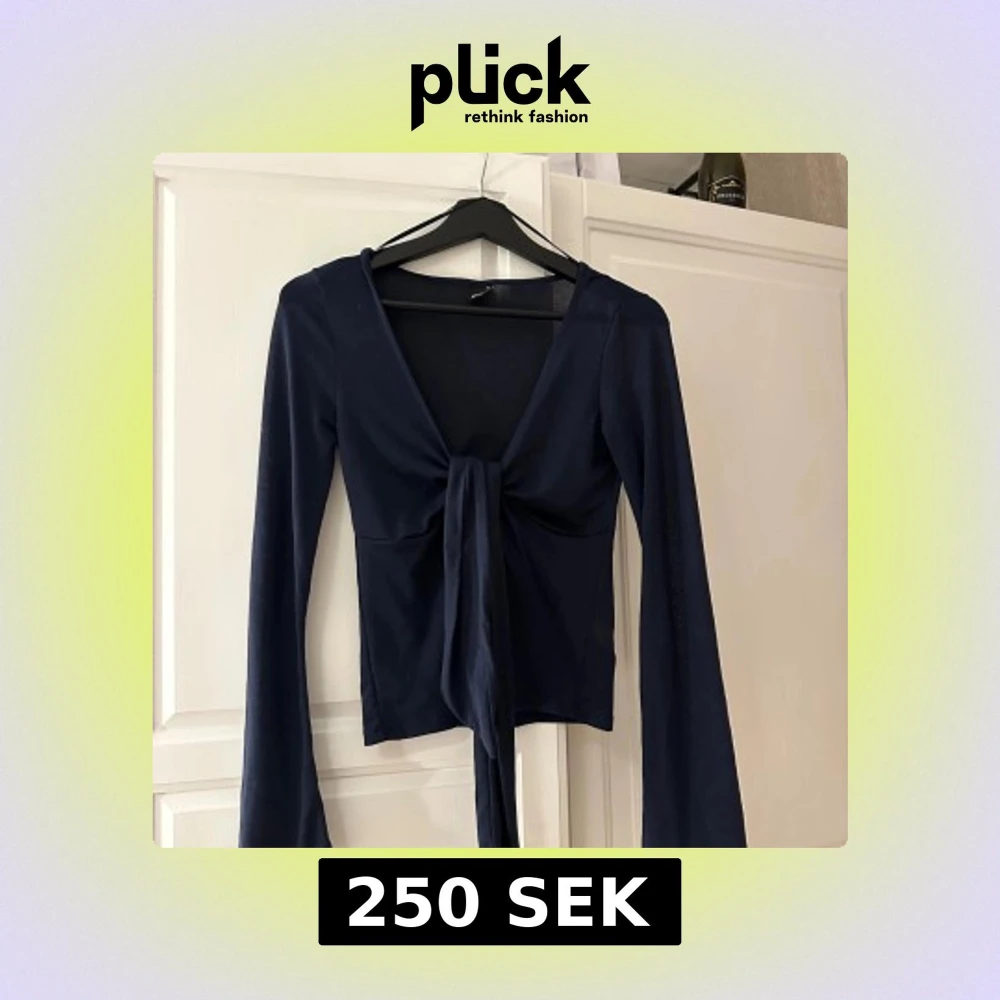 Säljer en snygg mörkblå topp från Gina Tricot med långa ärmar och knytning framtill. Perfekt för en stilren look. Toppen är i en mjuk och bekväm kvalitet.