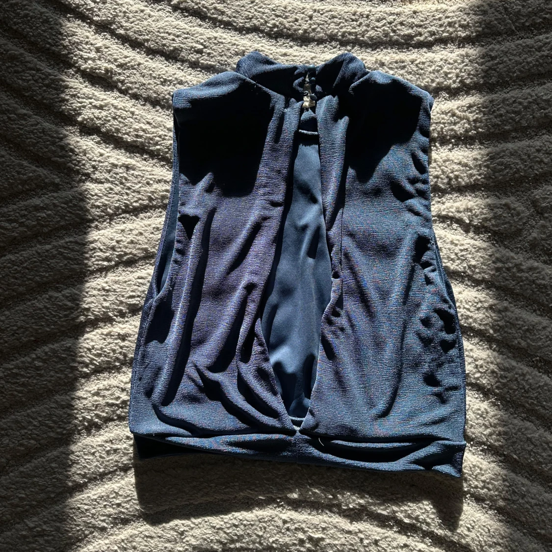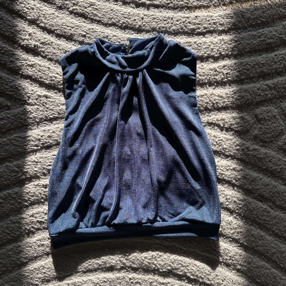 Säljer en mörkblå ärmlös topp från BikBok i storlek M. Toppen har använt ett fåtal gånger. Perfekt till fest eller nu till sommaren! 💓