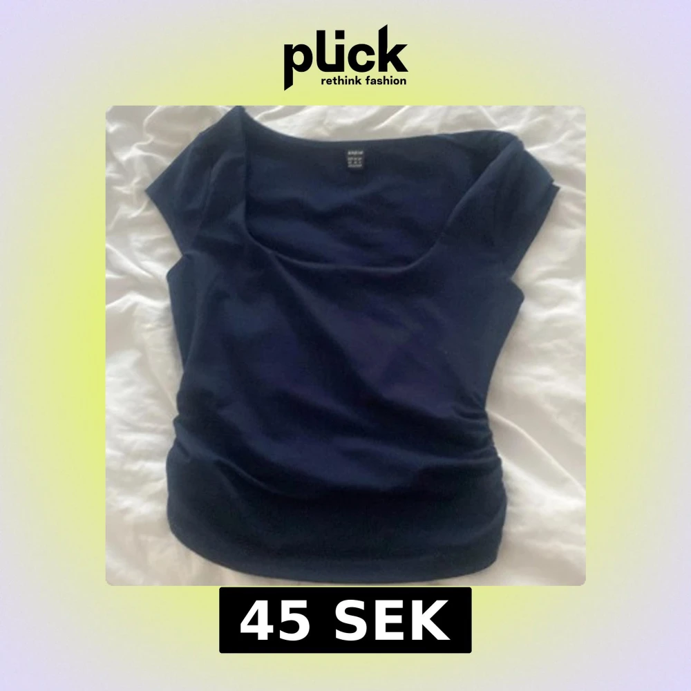 En enkel och stilren mörkblå topp med rund halsringning och korta ärmar. Perfekt att matcha med jeans eller kjol för en avslappnad look. Inget hål eller fläckar använd ca 1-2 ggr