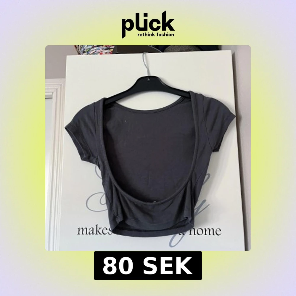 Mörkgrå croppad topp med djup rygg. Sparsamt använd.
