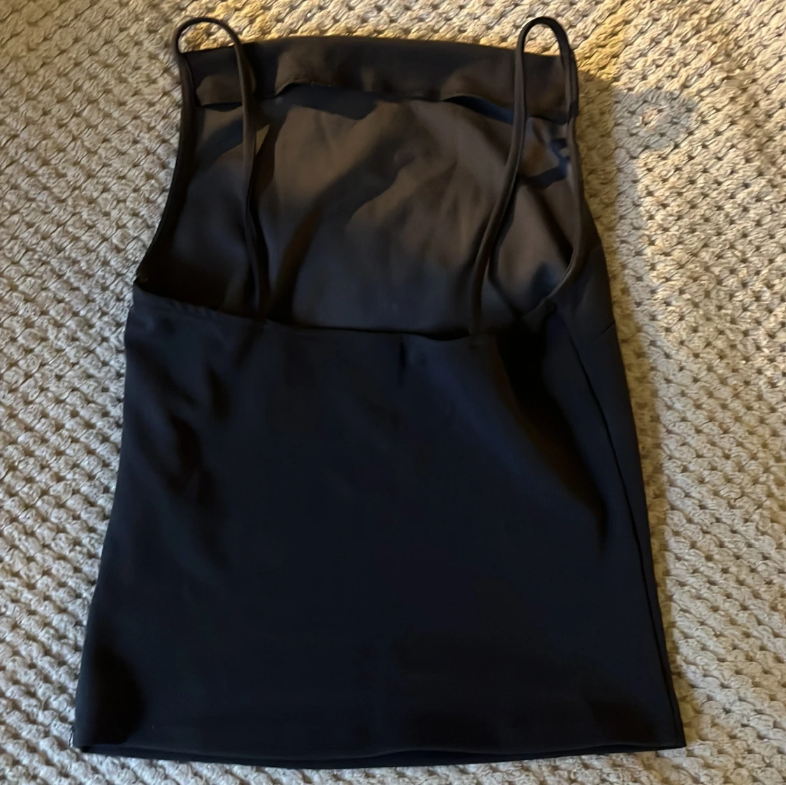 Mörkgrå stilren linnetopp från Gina Tricot i storlek S. Toppen har smala axelband och rak halsringning, vilket ger en clean och modern look. Materialet är mjukt och stretchigt, perfekt att klä upp till fest! Toppen är använd ca 3 gånger och är i nyskick! 🩵🩶