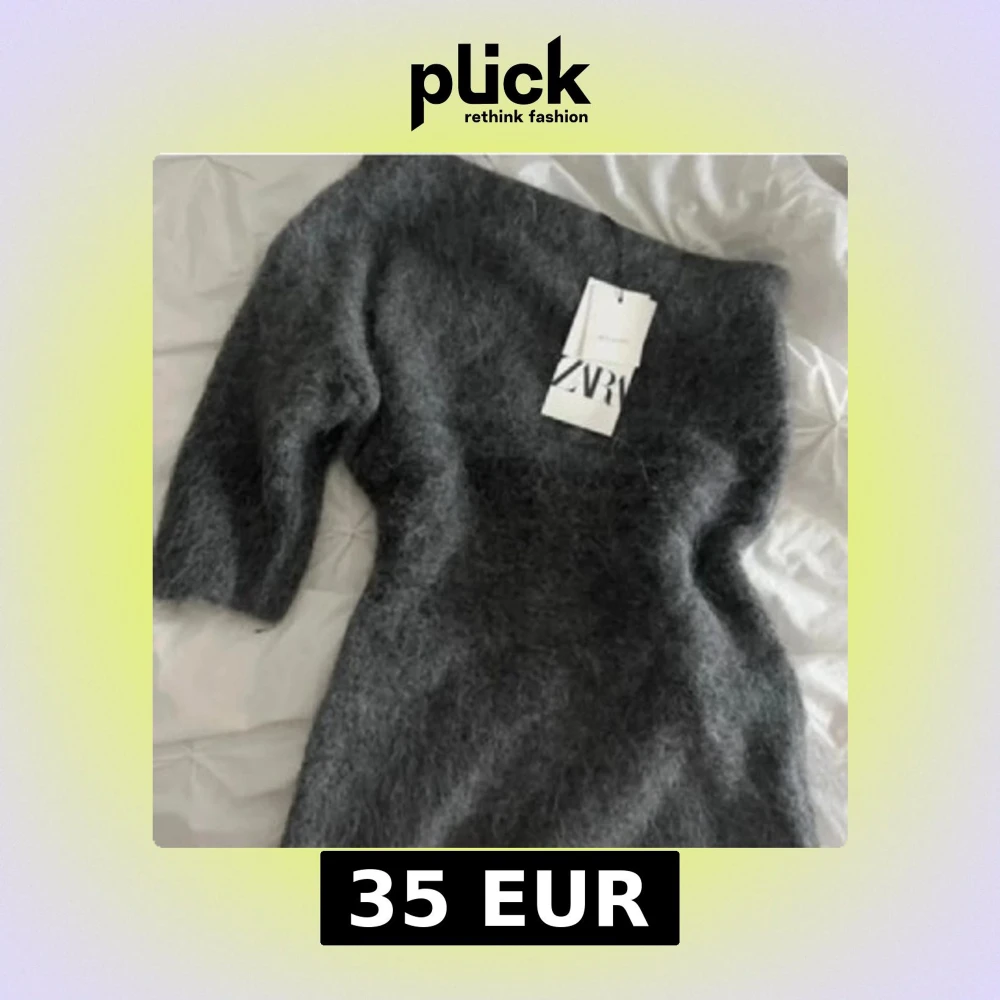 Säljer en fluffig och mjuk mörkgrå oneshoulder topp från Zara. Toppen har en asymmetrisk design med en ärm och är tillverkad i en lyxig alpackablandning. Perfekt för dig som gillar unika och trendiga plagg med cozy vibe.