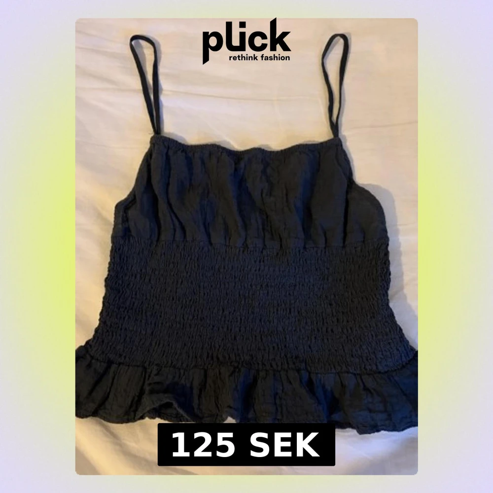 Supersöt mörkgrå linnetopp med smala axelband och smockad midja. Toppen har volangkant nedtill och är tillverkad i ett lätt och luftigt tyg, perfekt för sommaren och fest. Justerbara axelband för bästa passform!!