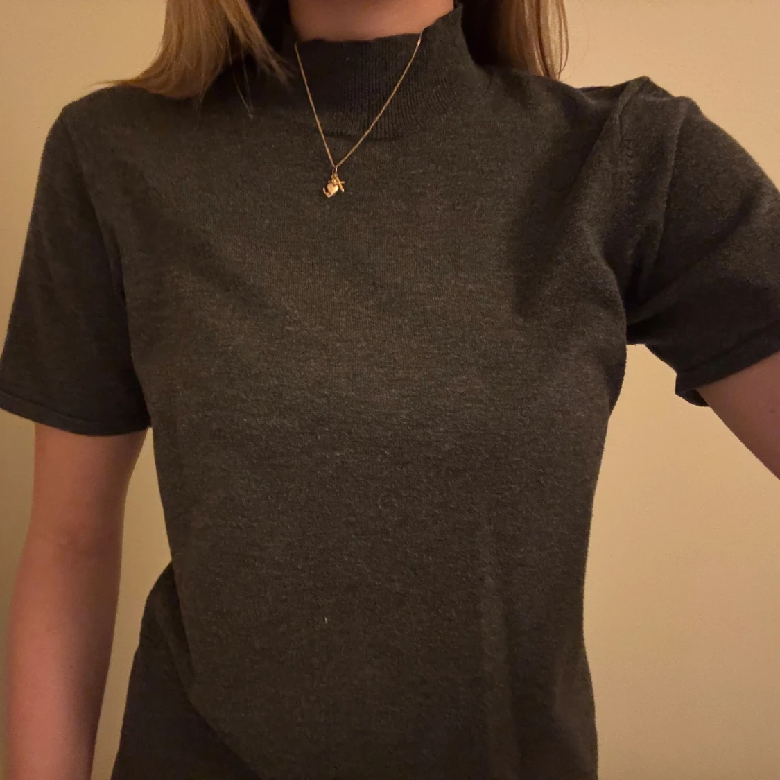 Mörkgrå t-shirt från Soyaconcept med högre ribbad krage och korta ärmar. Modellen är rak och har en clean look utan tryck eller mönster. Skön och mjuk känsla, perfekt till jeans eller vida byxor.