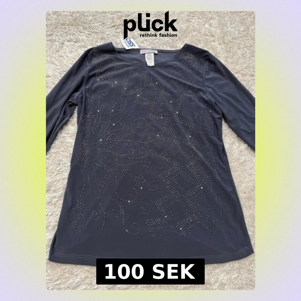 Snygg mörkgrå långärmad topp från S.Oliver med glittriga stenar i ett coolt mönster framtill. Toppen har rund halsringning och är tillverkad i mjuk bomullsmix som känns skön mot huden. Perfekt för dig som gillar lite extra bling i vardagen.