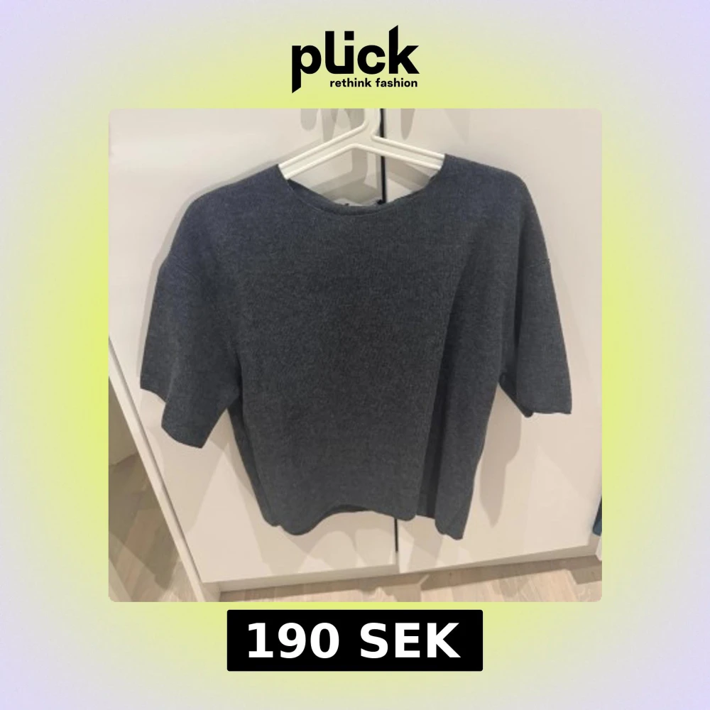 En stilren mörkgrå stickad tröja från Zara med korta ärmar och rund hals. Tröjan har en loose passform och är tillverkad i ett mjukt, material. Oanvänd!