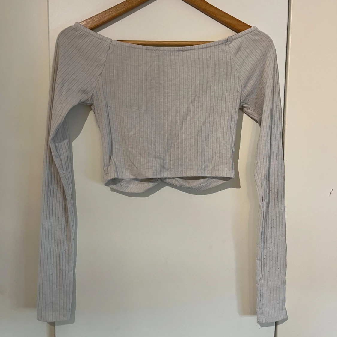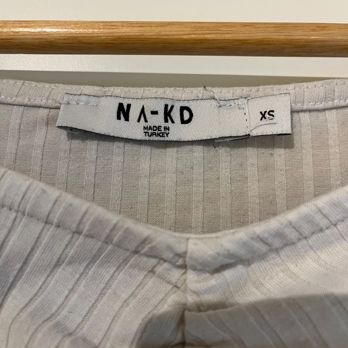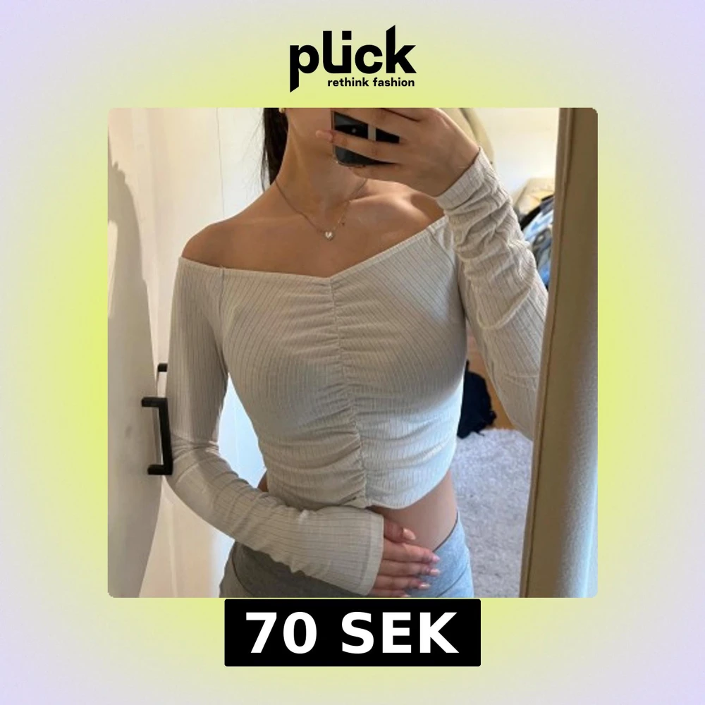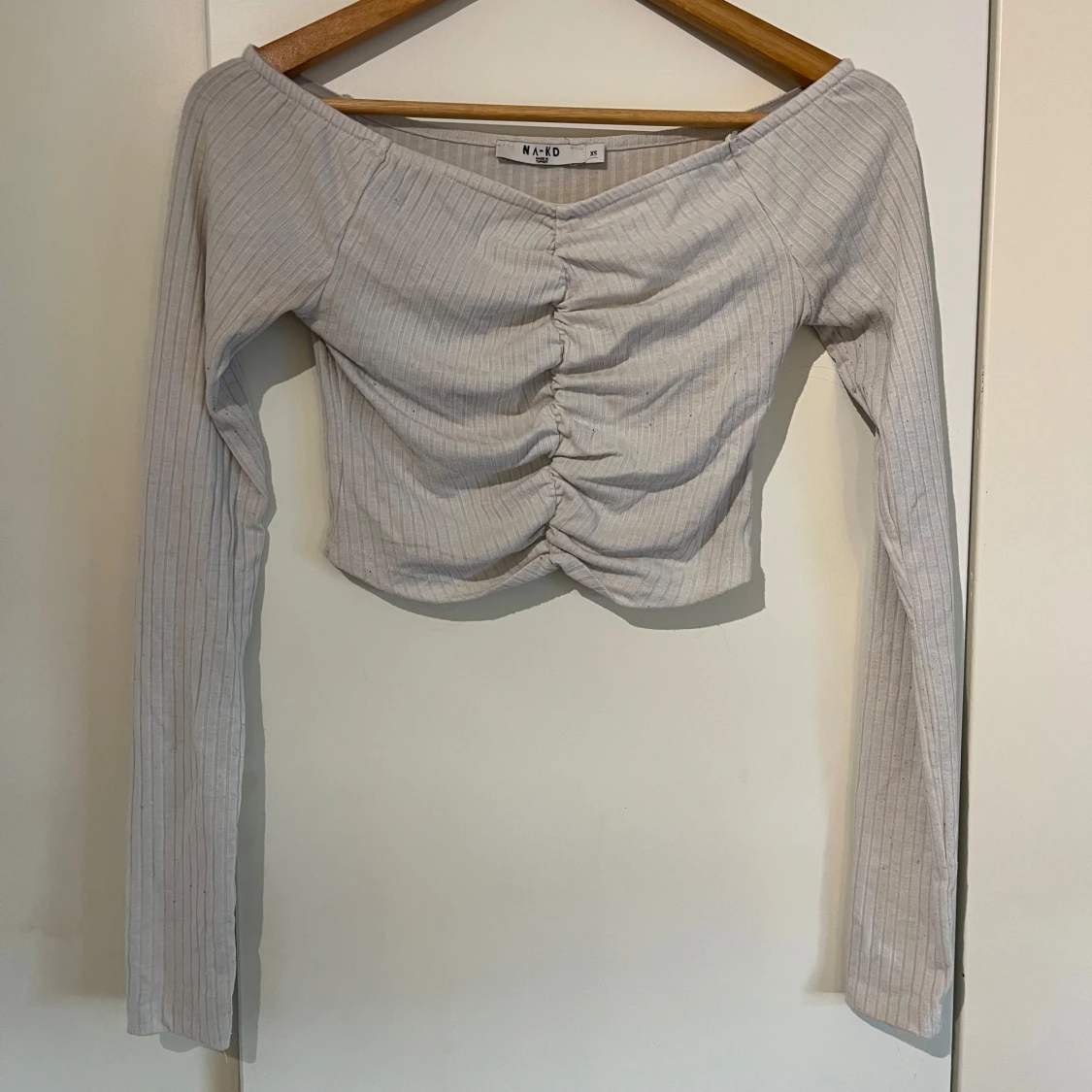 Säljer en stilren vit ribbad offshoulder topp från NA-KD. Toppen har långa ärmar och en snygg rynkad detalj framtill som ger en smickrande passform. Perfekt för att skapa en trendig look.