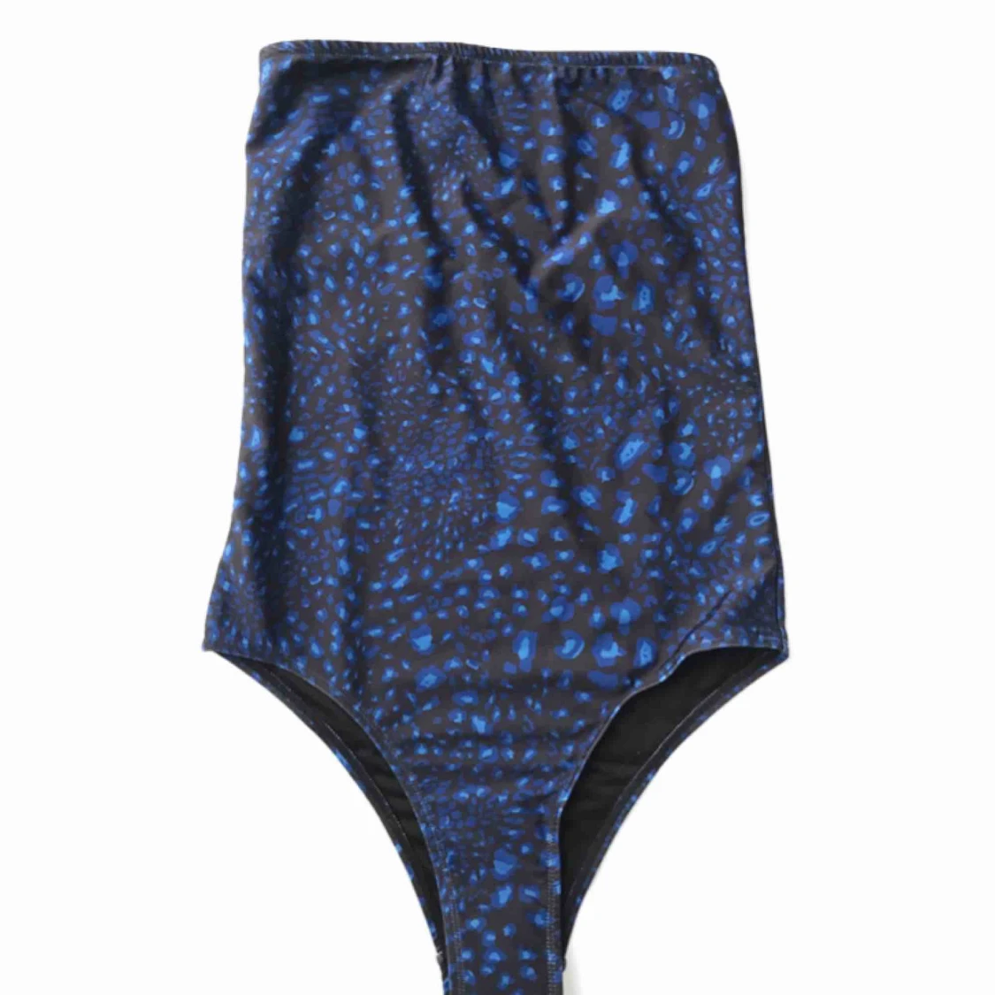 Blå/svart leopardmönstrad baddräkt från NA-KD. Köptes i somras men den är aldrig använd. Protection-tapen sitter kvar.