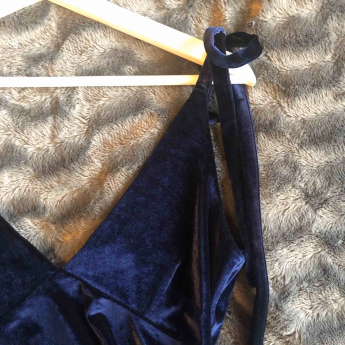 Oanvänd partytopp i mörkblå sammet från NA-KD. Jättefin och bra passform, färgen framkommer bättre på bild 2. ❣️ Prislappen är fortfarande kvar och nypris hade varit 349 kr. Axelbanden med rosetter går att knyta som man själv önskar. ✨