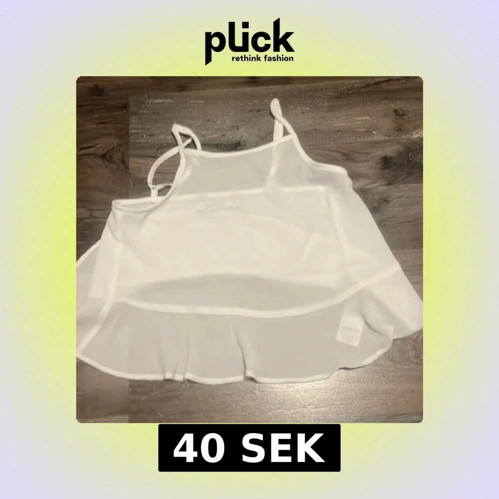 Säljer en vit, luftig linnetopp från NA-KD i storlek 32. Toppen har tunna axelband och volangkant nertill, vilket ger en söt och flowy look. Perfekt för varma dagar och enkel att styla med jeans eller kjol.