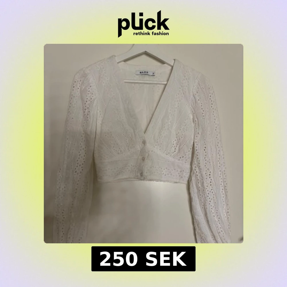 Superfin vit blus från NA-KD med broderade detaljer och v-ringning. Croppad modell med långa ärmar och knappar framtill. Såå söt till sommaren!!