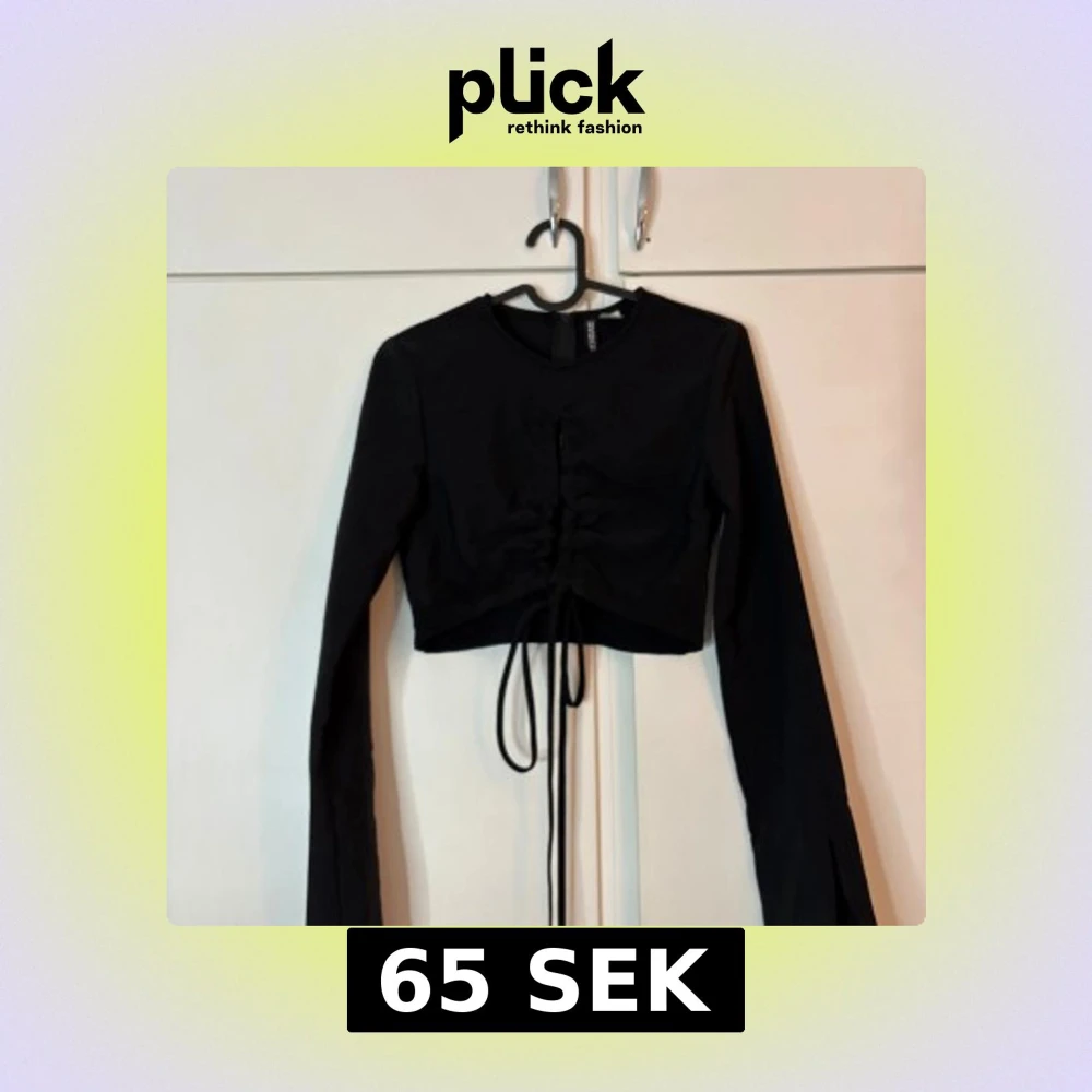 Svart långärmad croppad topp från h&m med snygg snörning framtill som ger en cool rynkad effekt. Toppen har rund halsringning, långa ärmar med lätt utsvängd form och dragkedja i ryggen. Perfekt för dig som gillar trendiga detaljer och stilren look. Storlek 36, helt ny med kapp kvar!