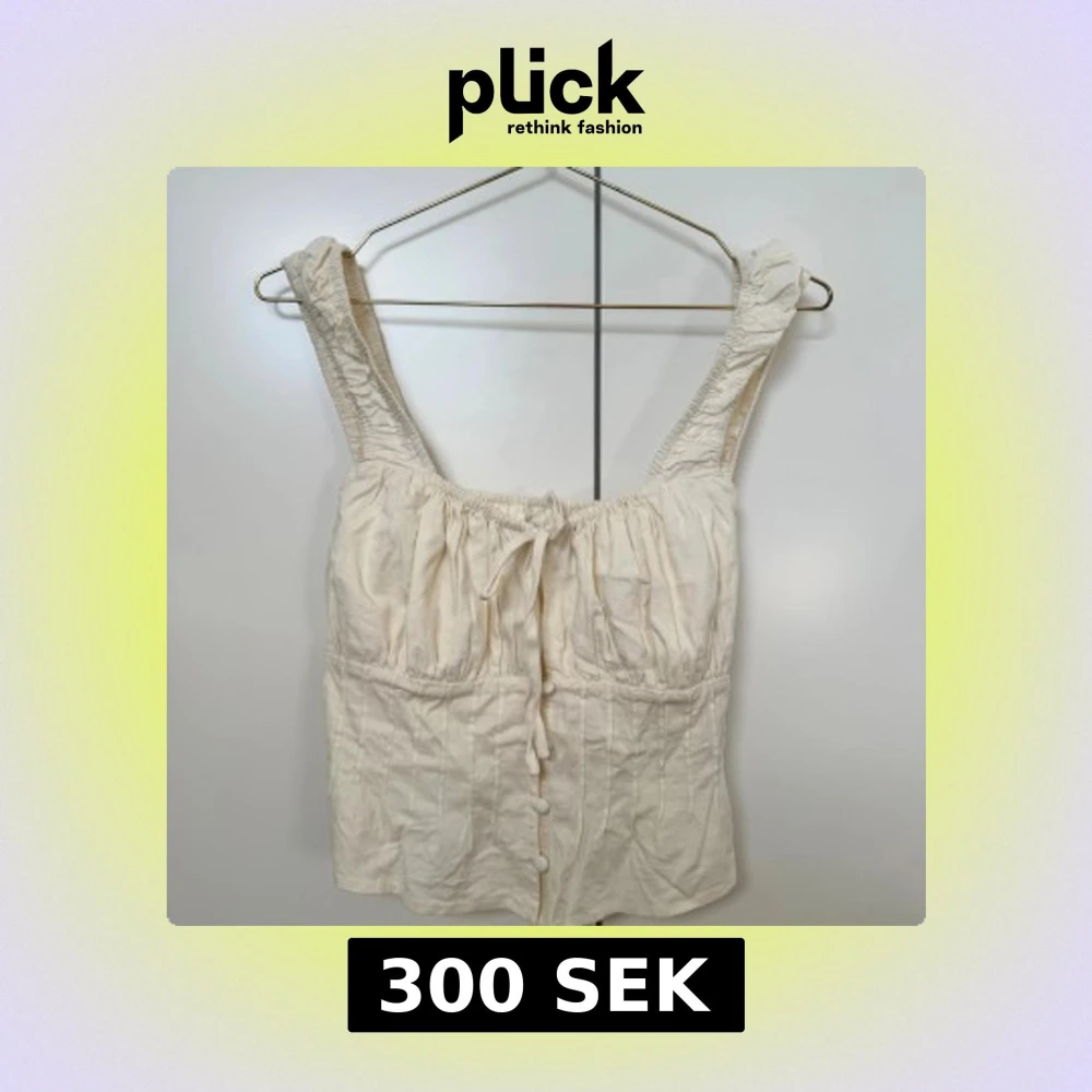 Supersöt krämvit linnetopp från NA-KD med breda axelband, knytning framtill och dekorativa knappar. Toppen har rynkade detaljer och är tillverkad i ett mjukt bomullstyg. Perfekt för en chill och trendig look.