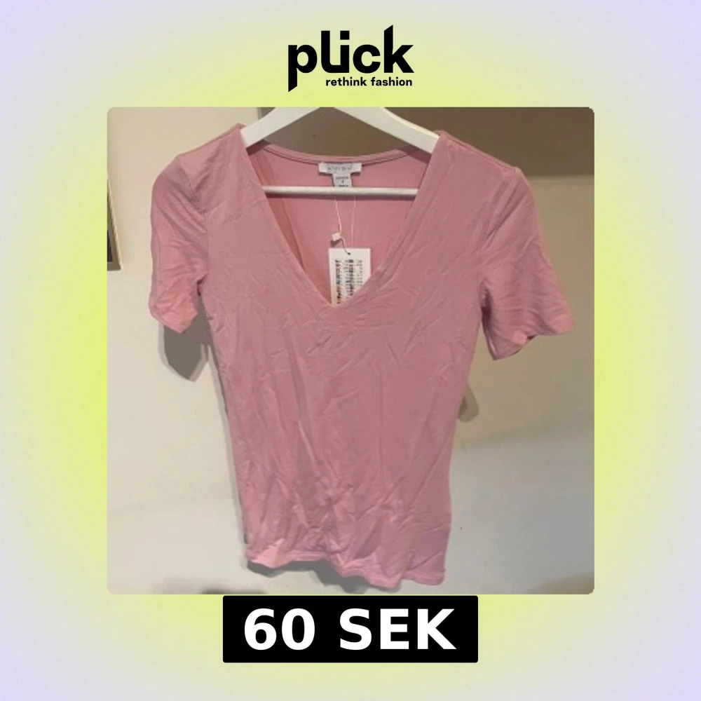 Säljer en söt rosa v-ringad topp. Toppen har korta ärmar och är perfekt för en avslappnad stil. Den är gjord i ett mjukt material som känns skönt mot huden.