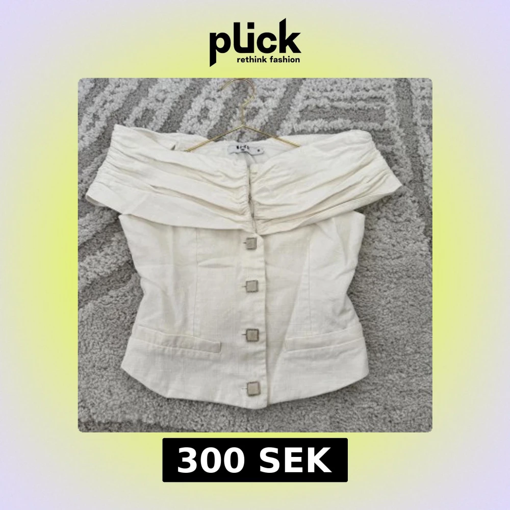 Supersnygg vit korsettopp från NA-KD med bred offshoulder-krage och markerad midja. Toppen har unika fyrkantiga knappar framtill och två dekorativa fickor. Materialet är strukturerat och känns lyxigt, perfekt för att sticka ut.