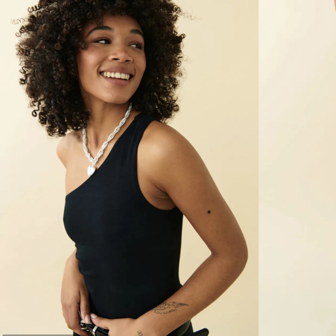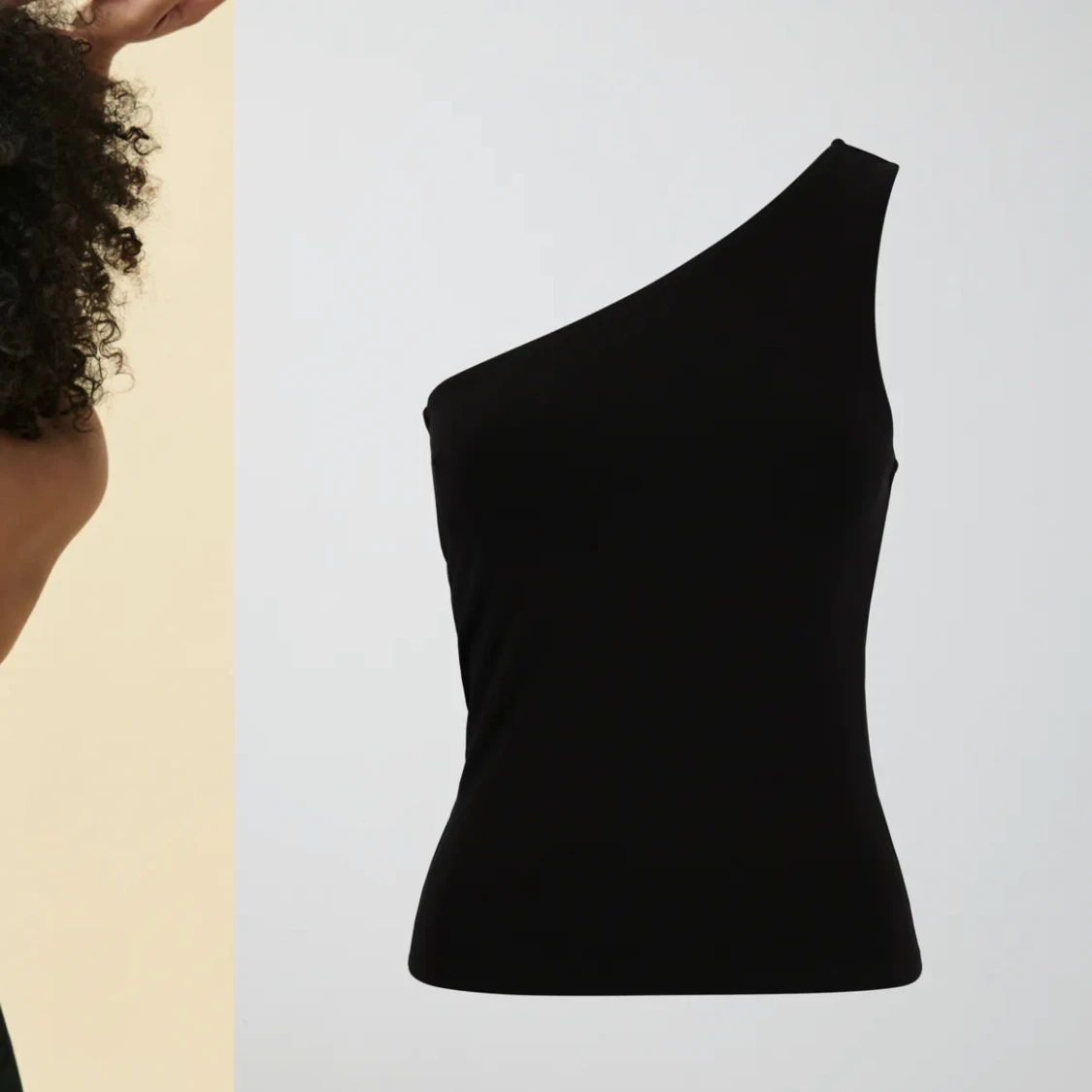 Svart one shoulder topp med ribbat materialđanvĂ€nd fĂ„tal gĂ„nger sĂ„ i bra skickđstl Sđskriv gĂ€rna för mer bilder