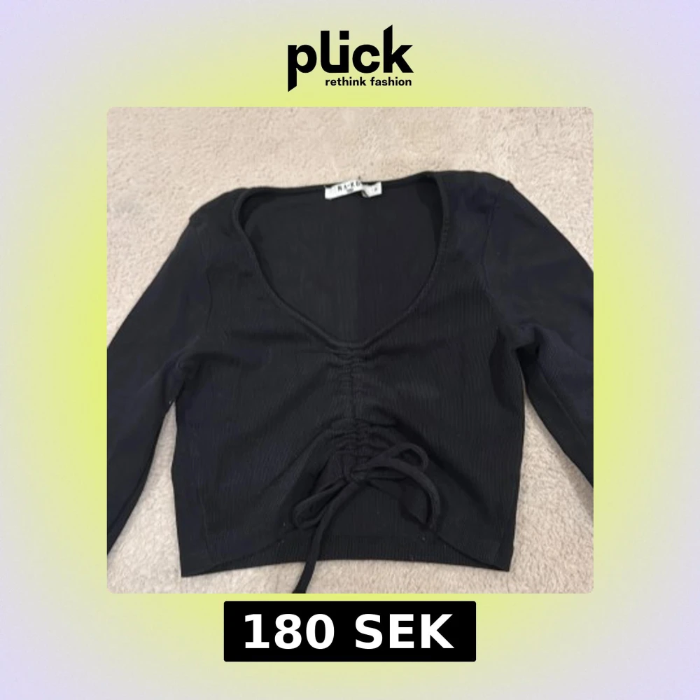 Svart croppad topp från NA-KD med långa ärmar och djup v-ringning. Toppen har ribbad struktur och snygg snörning framtill som ger en cool detalj. Perfekt att styla med höga jeans eller kjol för en trendig look.
