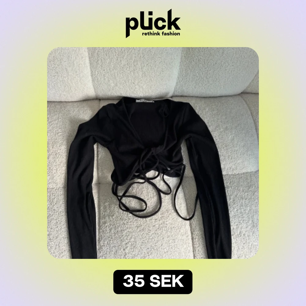En svart fest topp med lång ärm och snörning framtill. Toppen har en v-ringad design och är croppad. som ny!