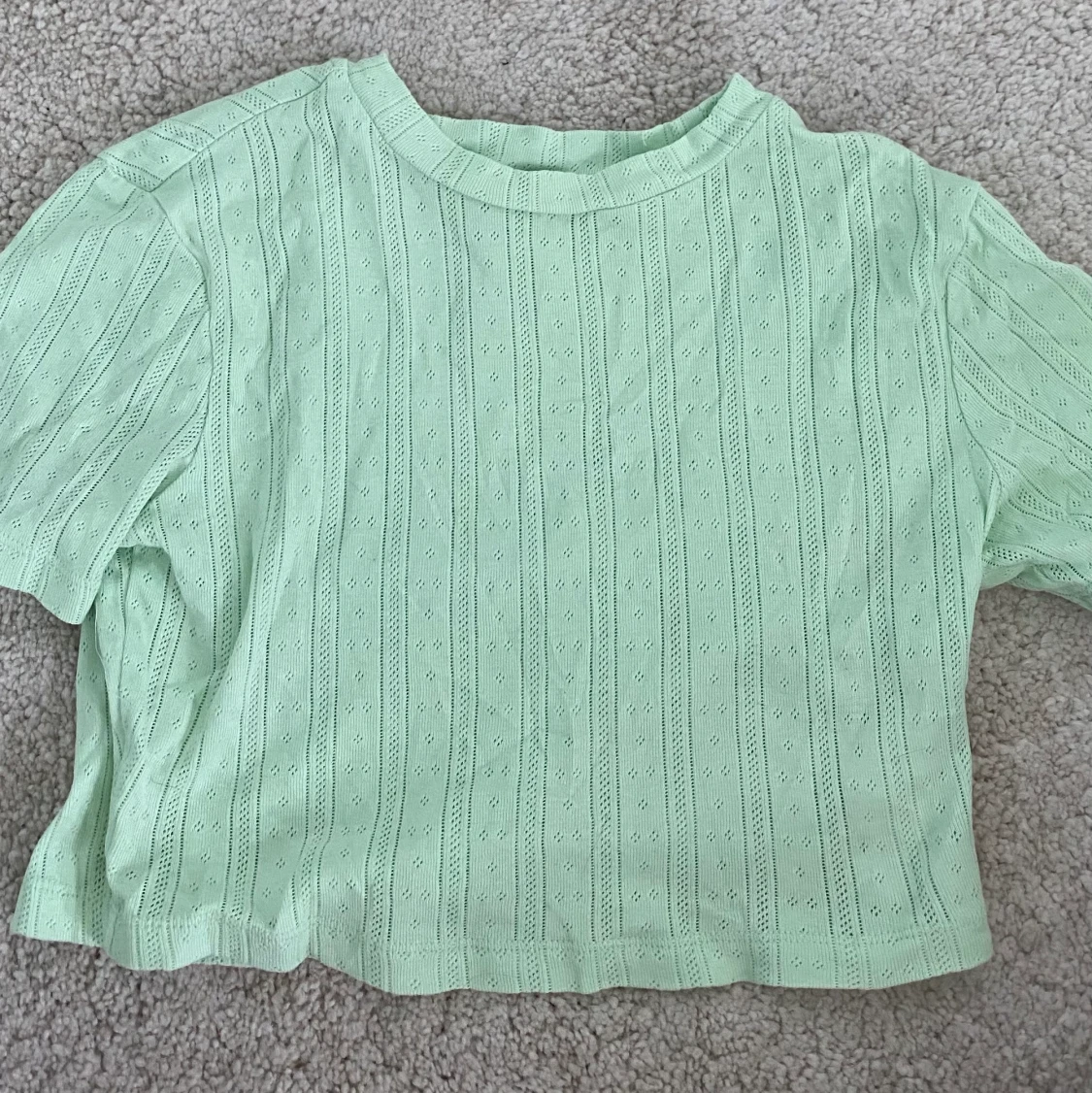Super söt tröja men fina detaljer i ljusgrön, aldrig använd, storlek xs/s💗i