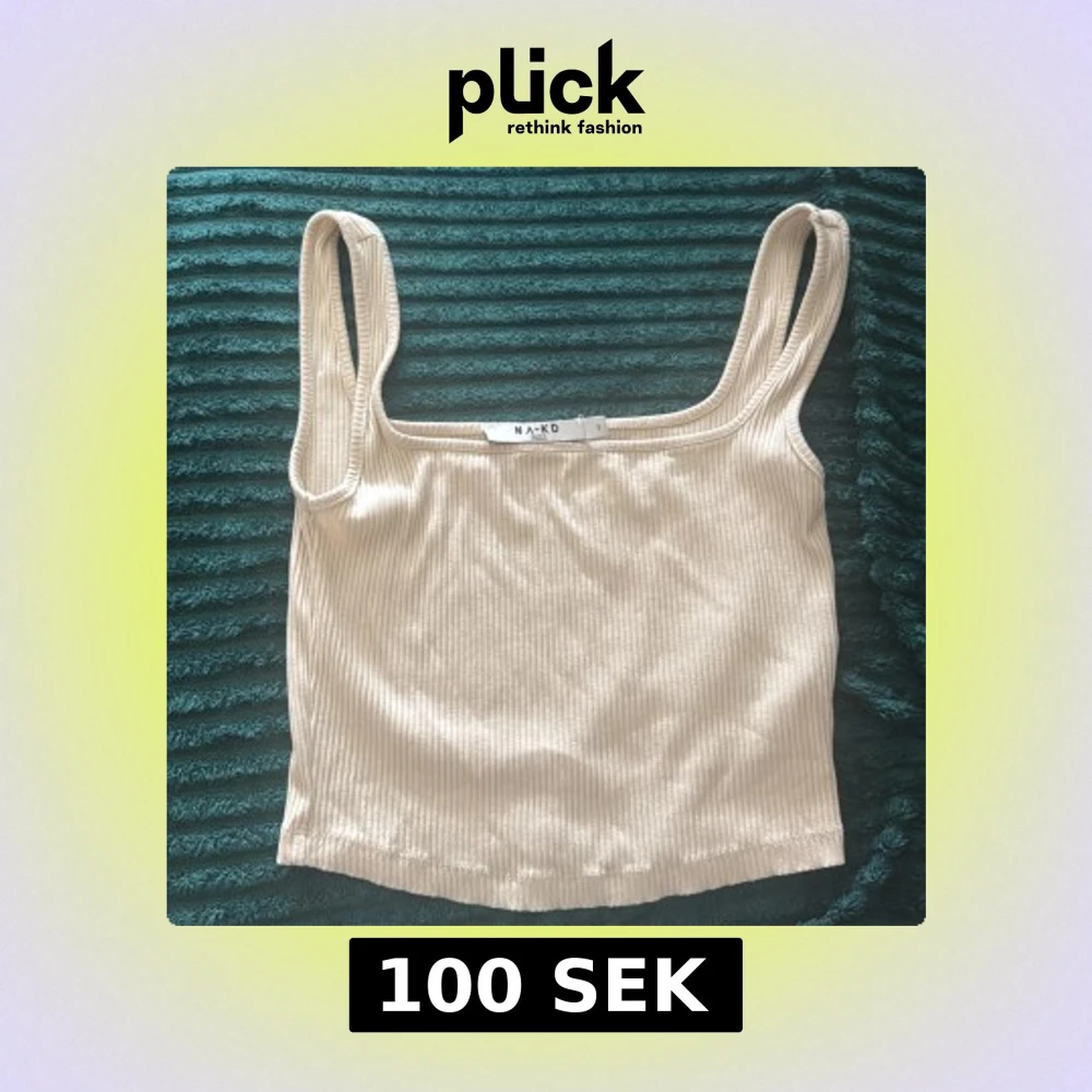 Säljer en beige ribbad linnetopp från NA-KD. Toppen har breda axelband och är croppad med en enkel, stilren design. Perfekt för varma dagar och enkel att matcha med jeans eller kjol.