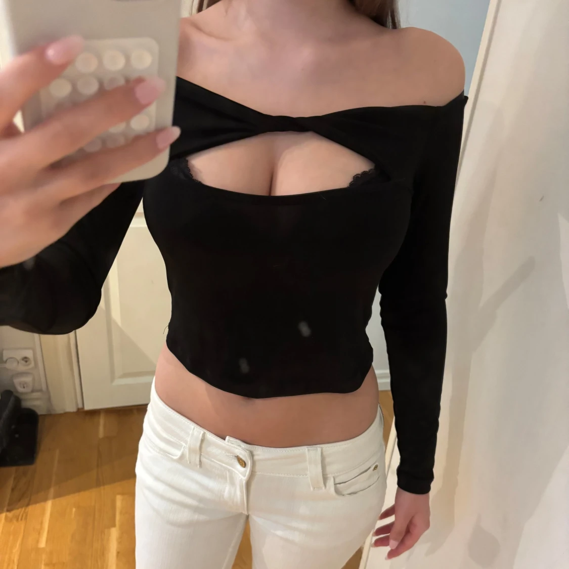 Trendig svart offshoulder topp från NAKD men köpt på Sellpy (Första bilden är från sellpy)