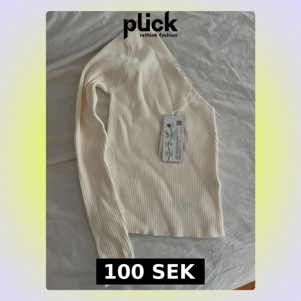 Trendig ribbad offshoulder topp i beige med lång ärm. Snygg croppad passform och stretchigt material som sitter skönt på kroppen. Perfekt för dig som vill ha en unik och stilren look.