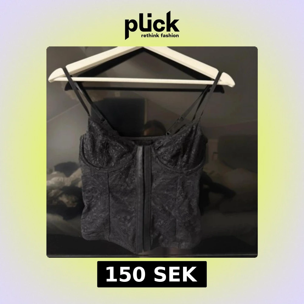 Supersnygg svart korsett från NA-KD med tunna justerbara axelband och blommig spets över hela toppen. Den har markerade kupor och knäppning framtill. Perfekt att styla med jeans eller kjol för en trendig look.