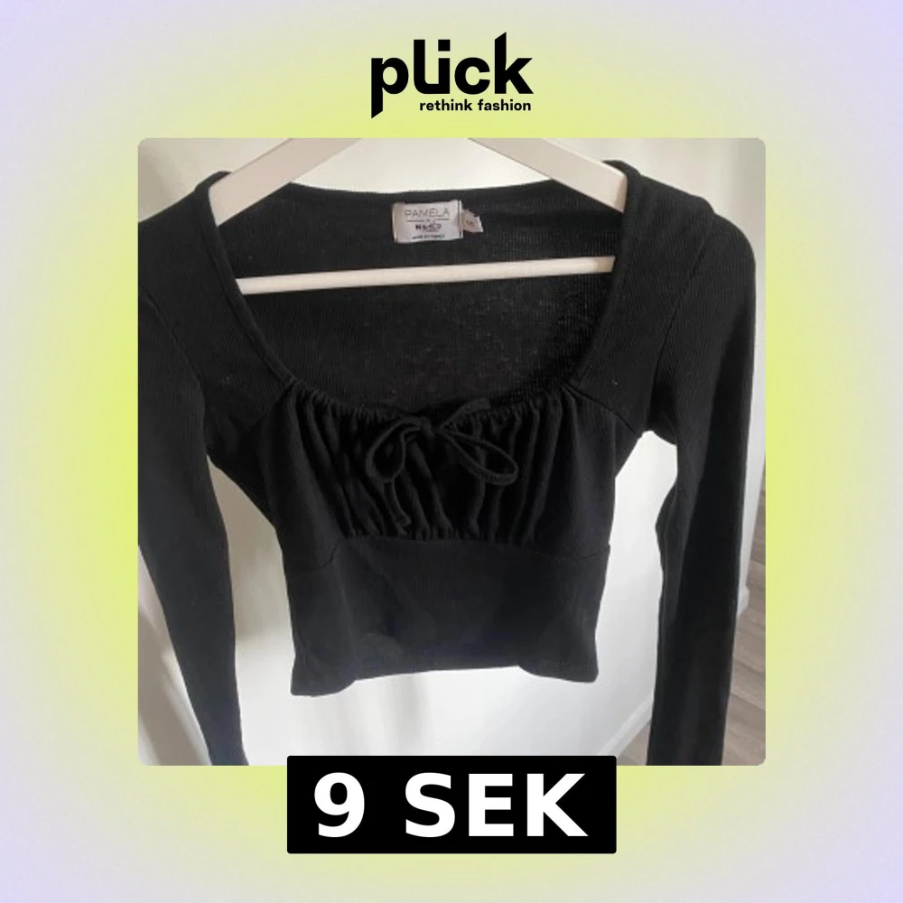 Svart croppad topp från NA-KD med långa ärmar och ribbad struktur. Toppen har en snygg snörning framtill och en fyrkantig ringning som ger en trendig vibe. Perfekt att styla med höga jeans eller kjol.