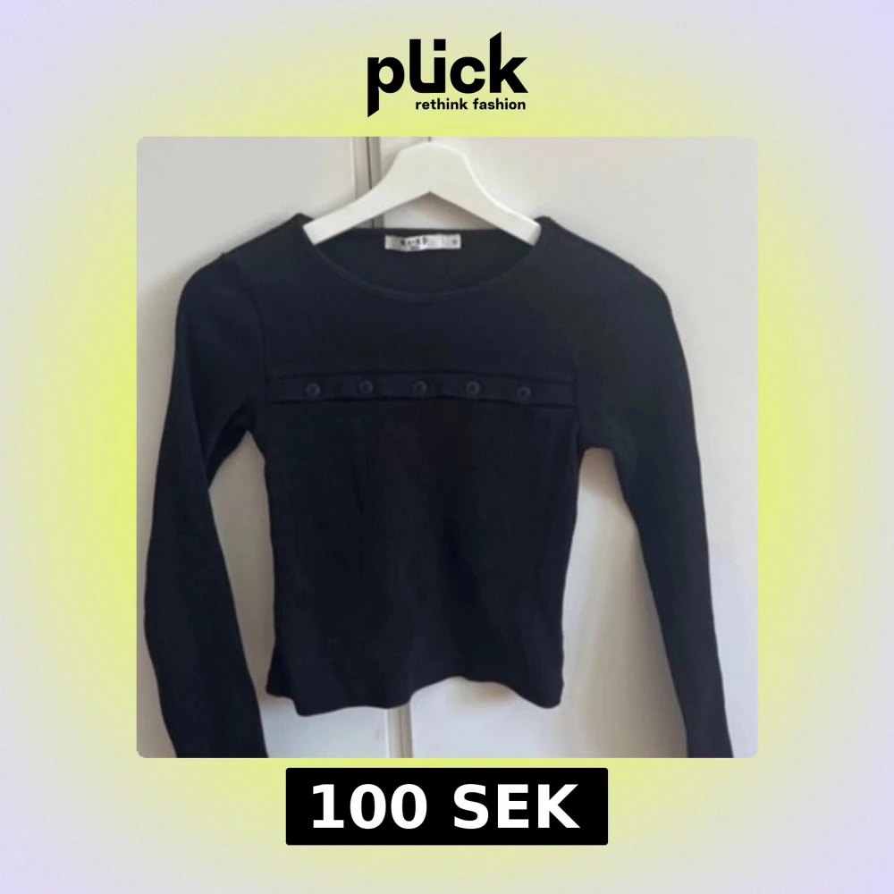 Svart långärmad topp från NA-KD i ribbat material. Toppen har rund halsringning och en snygg detalj med en rad knappar framtill över bröstet. Perfekt att styla med jeans eller kjol för en clean look.
