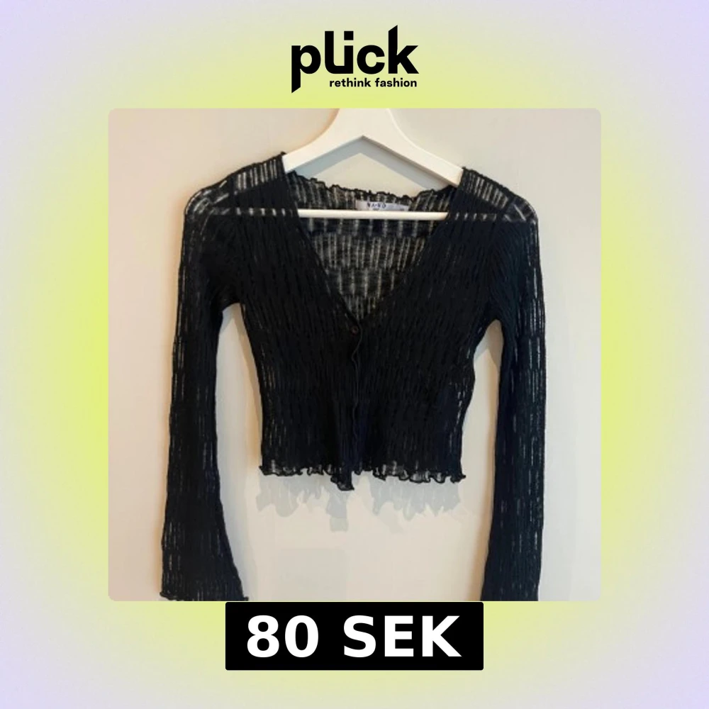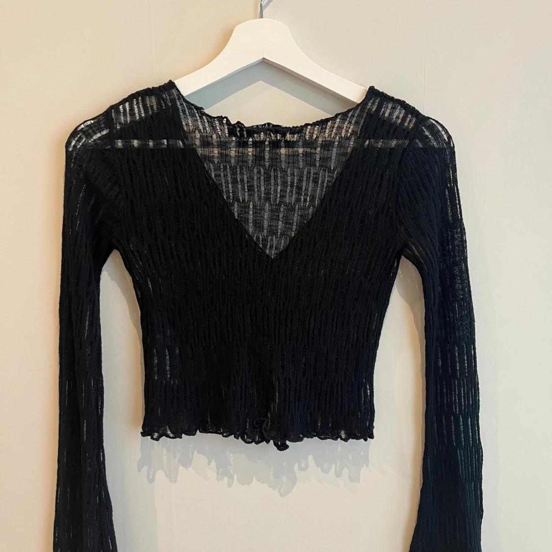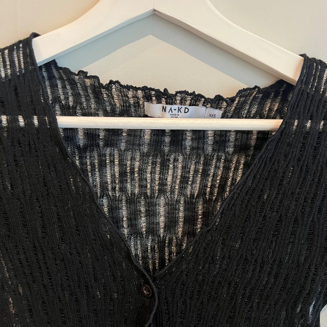 Finstickad svart cardigan från NA-KD med en knapp framtill. Kortare modell i stretchig kvalitet.