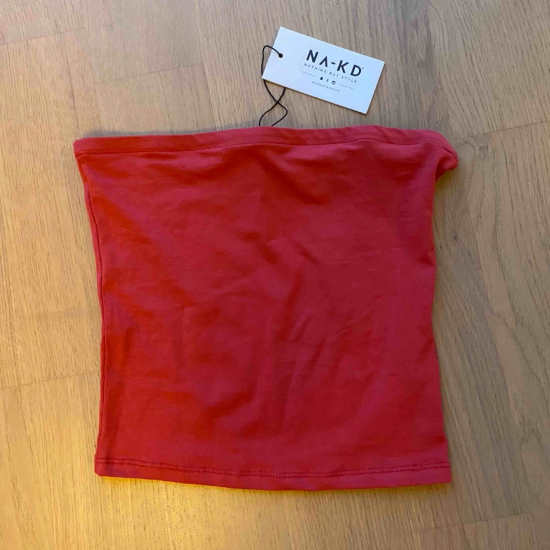 Röd bandeau topp från nakd strl xs med gummi på insidan så den stannar uppe. Helt oanvänd lapparna kvar