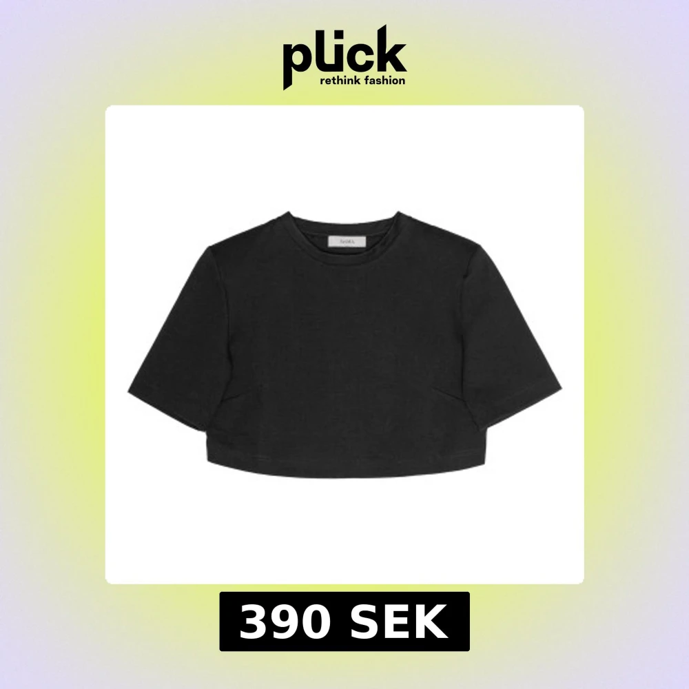 En svart croppad t-shirt från Avora (capri) med rund halsringning och korta ärmar💗 Använd en gång! Storlek xxs men är som en xs. Orginalpris 800kr